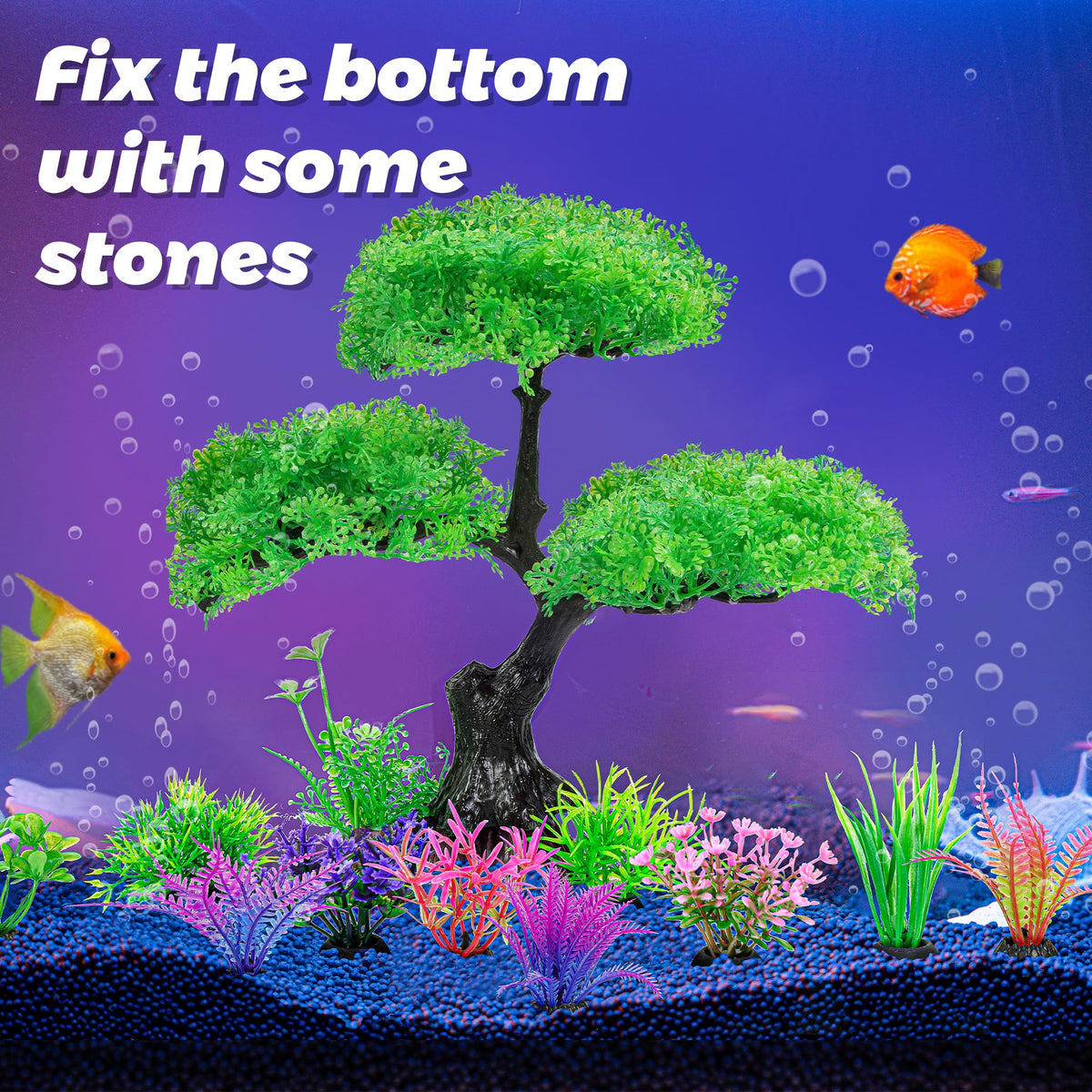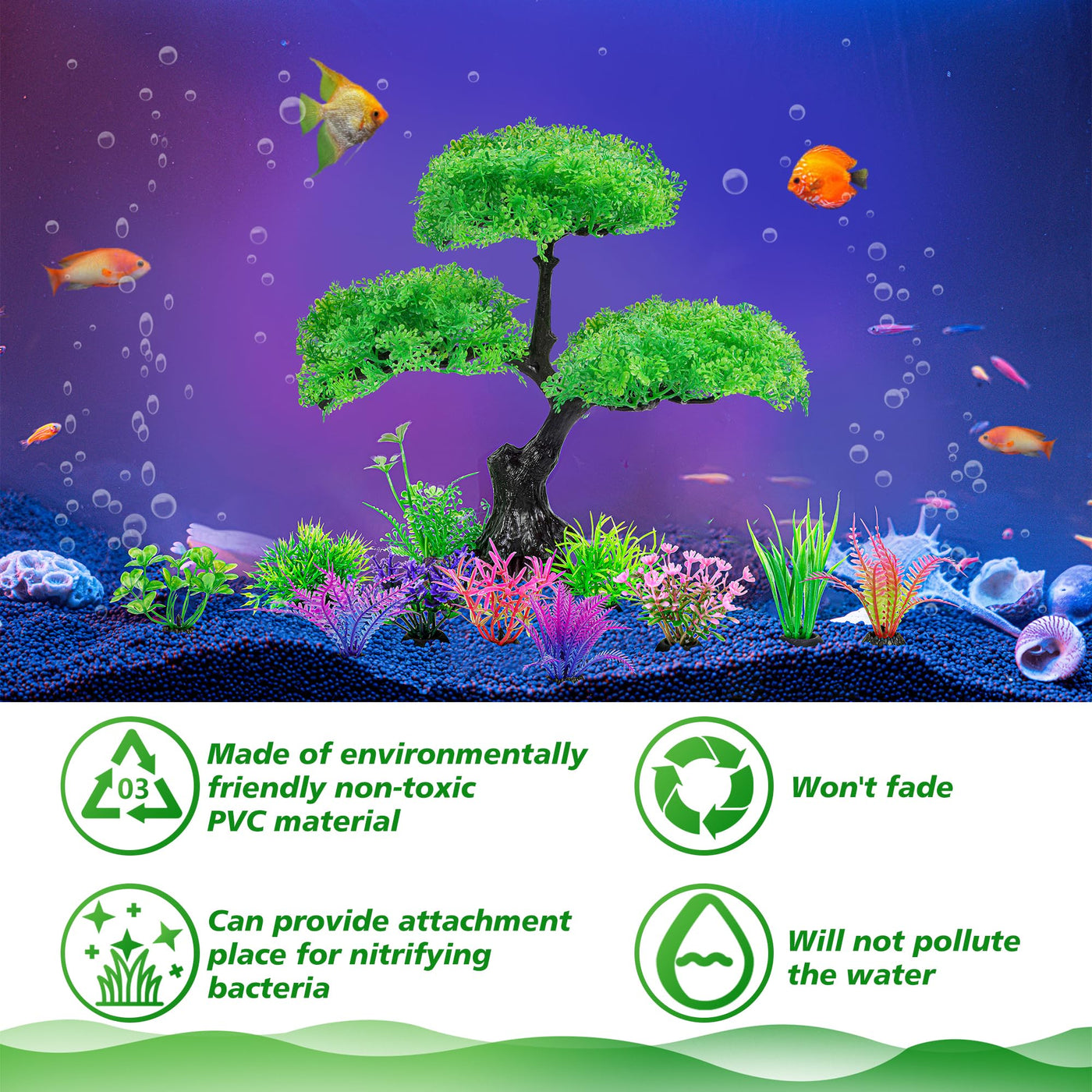 Our Aquarium Plastic Tree Plant Decoration Is Made From Premium Pvc And Bases Both Are Safe And Reliable, Which Means That They Are Free From Rust And Rot, And Are Perfectly Safe For Your Fish Allowing Them To Swim And Play Without Worry The Fish Tank Plants Will Neither Fade Nor Create Pollution To The Water, Soft Leaves Wont Hurt Your Fish Which Will Provide A Comfortable And Clean Living Environment For The Fish Our Plastic Aquarium Plants Have These Advantages Over Living Aquarium Plants:1Dont Need Any Pruning 2 Dont Affect The Water Ph 3 Wont Bigger And Die 4 Donat Need Specialized Lighting 5 Made Of Premium Materials, Free From Rot 6 Soft Leaves Wont Hurt Your Fish Or Other Pets Note: Artificial Plants Can Be Squeezed And Deformed During Packaging And Transportation, And Put Into 100 - 140 Warm Water To Get Restored