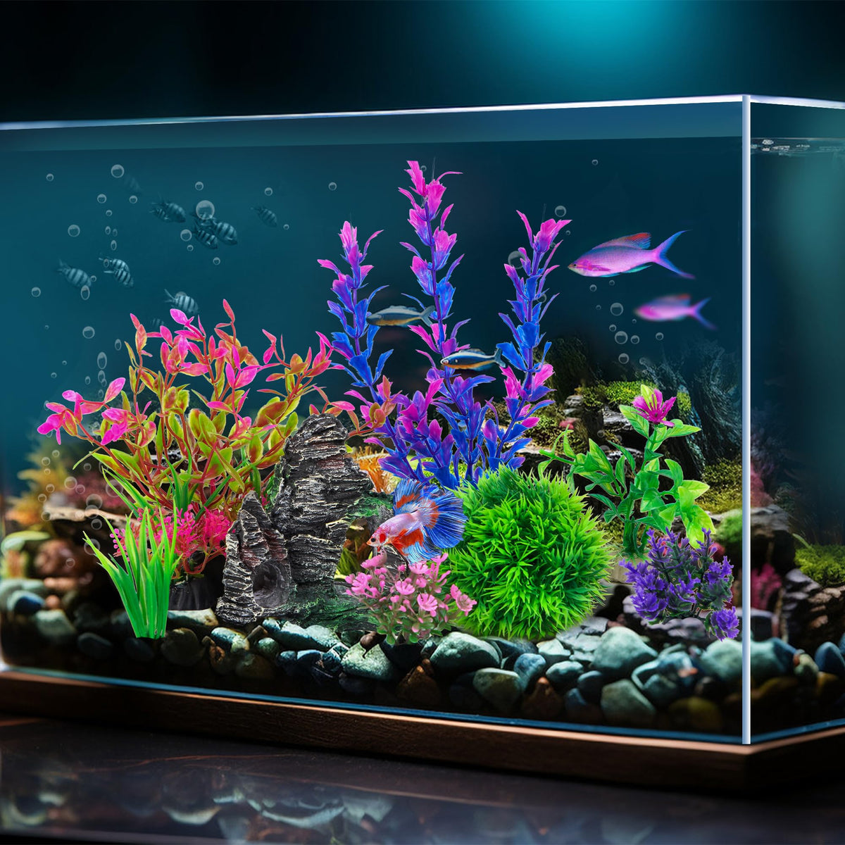 Q: Do the plastic plants affect the water quality in the tank?A: No, Ameliade plastic plants do not influence the pH value of the water, nor do they pollute it. They provide a clean and stable environment for your fish.