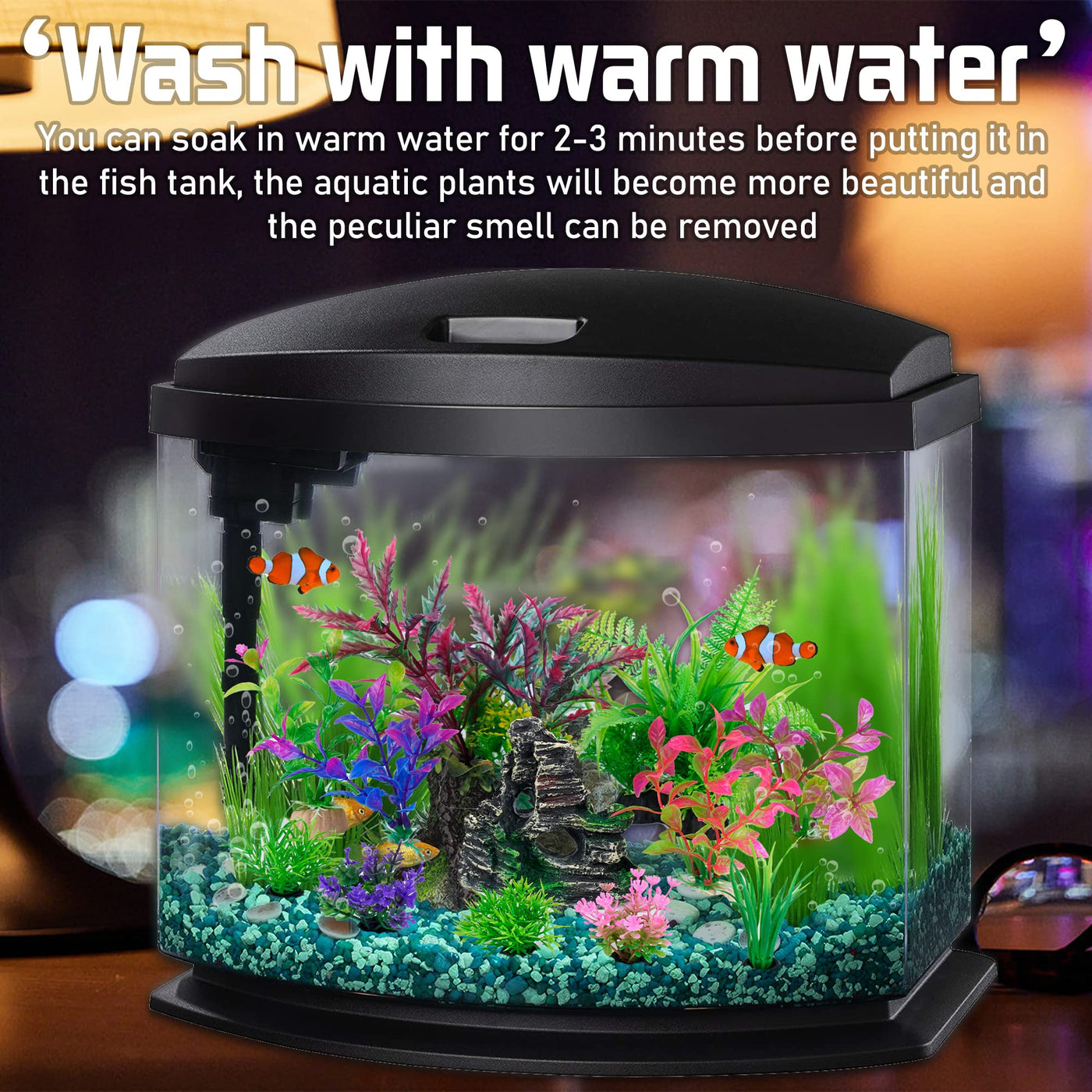 Ameliade aquarium plastic decorative plants are made of high-quality materials. They are completely safe for your fish, allowing them to swim and play without worry. Aquarium plants will neither fade nor pollute the water, and the soft leaves won't hurt your fish. This will provide a comfortable and clean living environment for the fish. Compared with live aquarium plants, Ameliade plastic aquarium plants have the following advantages: 1. No pruning is required. 2. No influence on the PH value of the water. 3. No growth or death. 4. No special lighting is required. 5. They are made of high-quality materials so that they won't rot. 6. Soft leaves will not hurt your fish or other pets. Note: Artificial plants are deformed during packaging and shipping and will recover when they are placed in 120 F warm water. Since it is a brand-new product, it is colored with pigments and shipped sealed in an airtight bag, there will be a slight smell. After washing with warm water and ventilation, the smell will disappear quickly. (Do not wash with too hot water, otherwise, the hot melt glue will melt! )