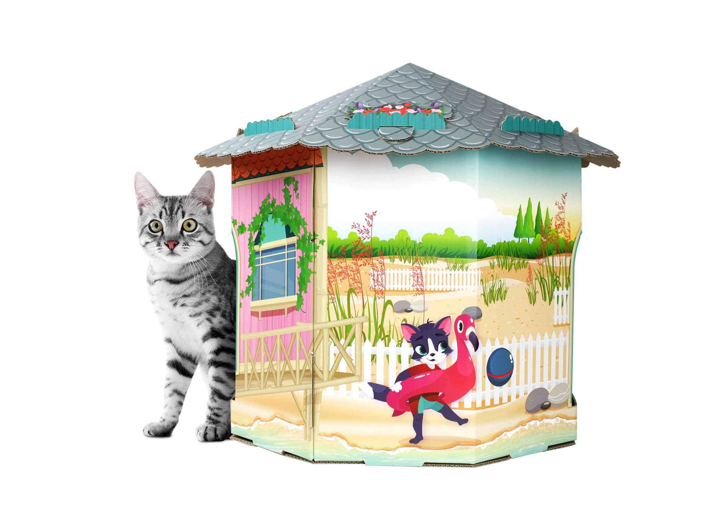 American Cat Club Cat House With Scratcher & Catnip Included - Beach Cottage