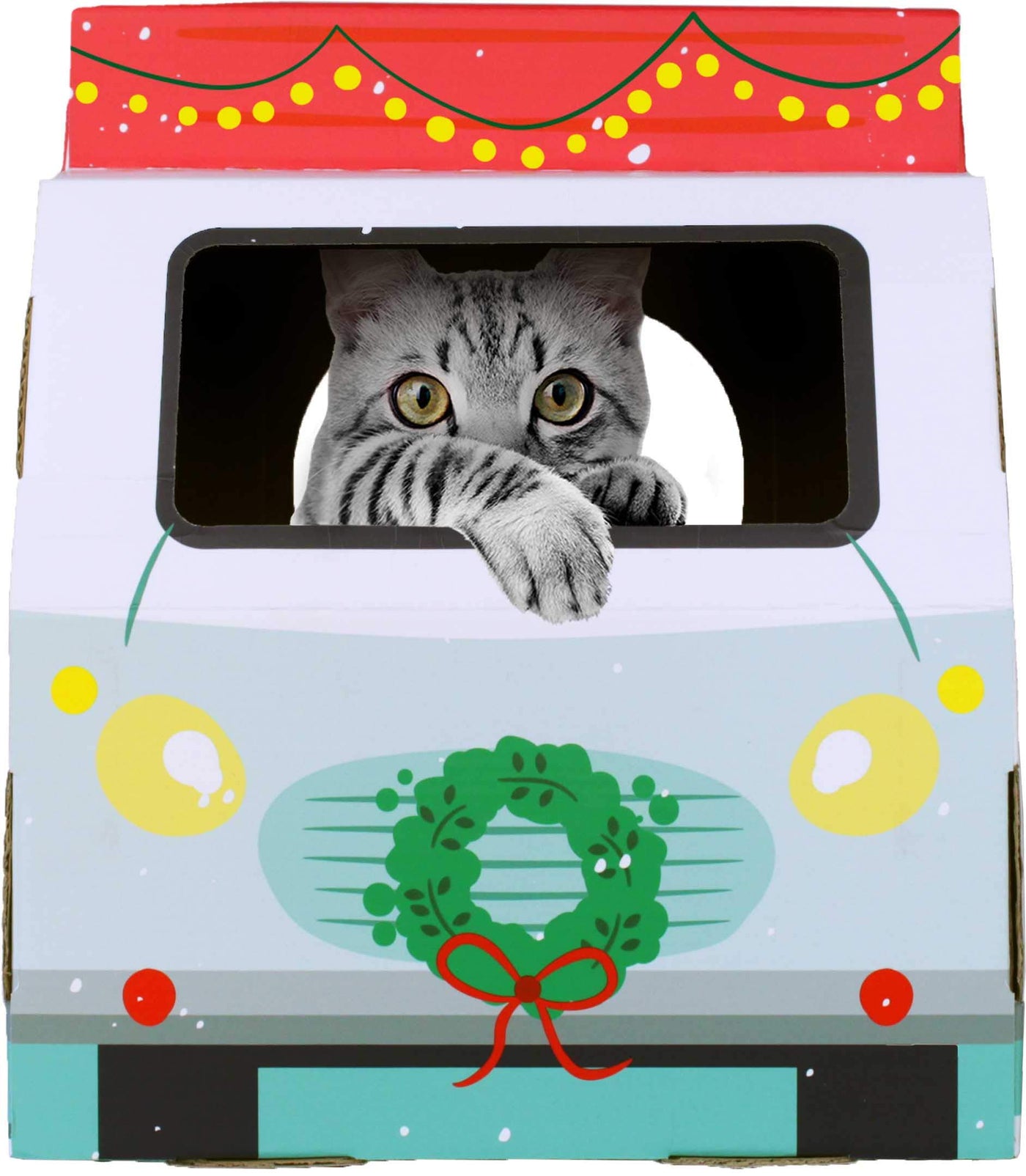 American Cat Club Christmas Cat House & Cat Scratcher W/Bonus Catnip Included