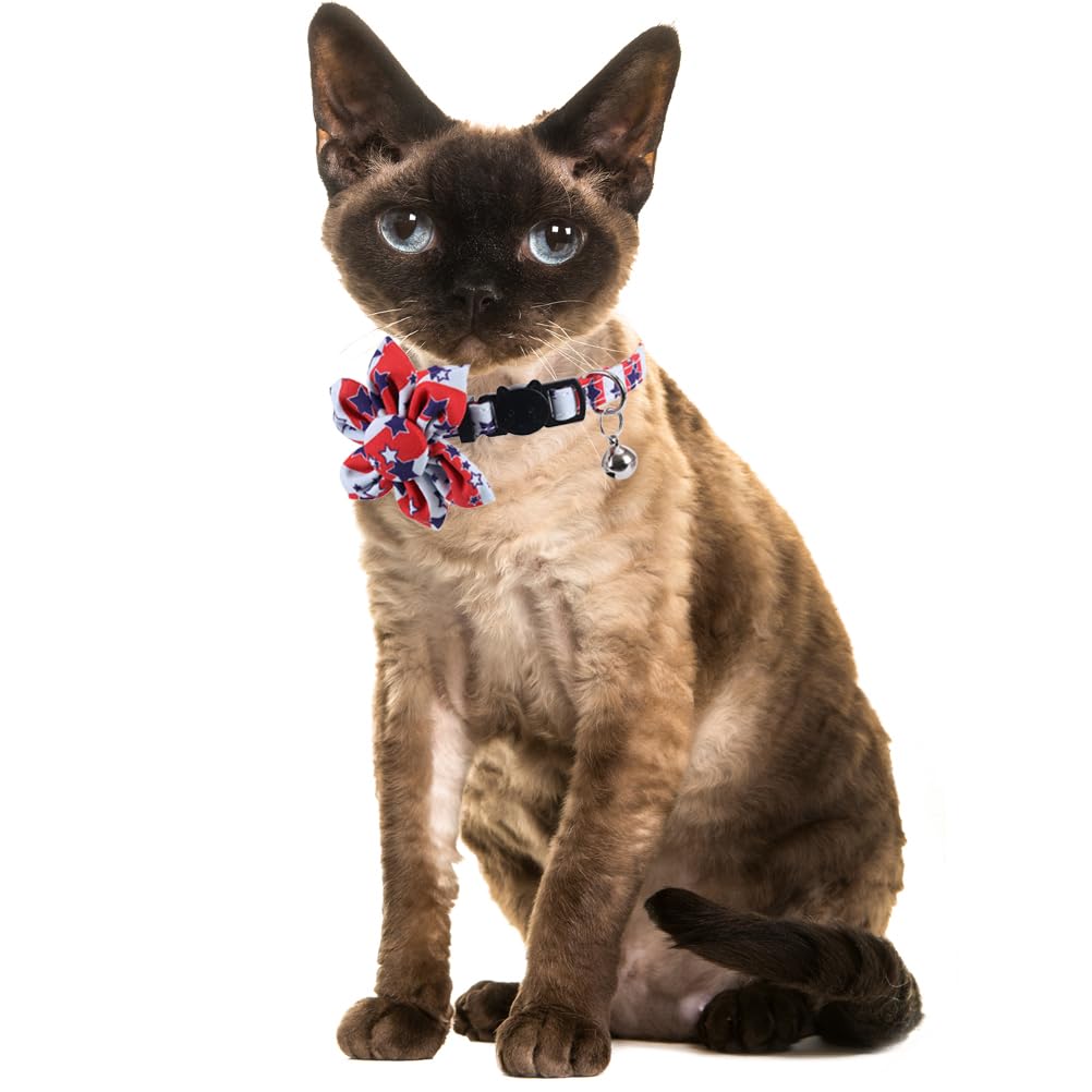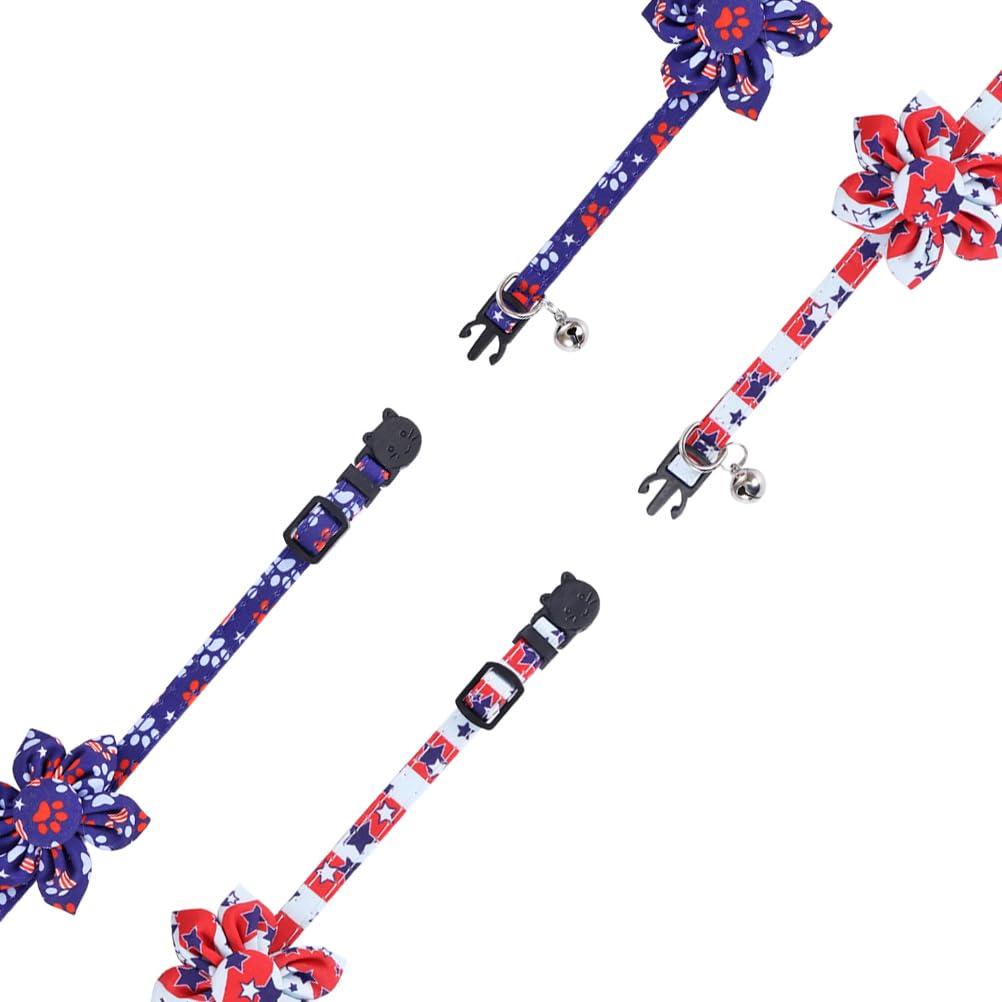 This Collar Is Made Of Export Durable Fabric,Smooth Surface,Very Comfortable And Soft. It Is Very Novel,Unique And Special.The Pet Bowknot Collar Makes Your Cat More Pretty,Lovely And Fashionable.The Usa American Flag And Star Pattern Bring Patriotic Atmosphere In Party.Applicable Occasion: Memorial Day, 4Th Of July Independence Day And Any Other Patriotic Day Of The Year Etc. Material:Breakaway Buckle, Nylon,Ringing Bell Packet Includes:2 Pcs Collars,2 Different Colors