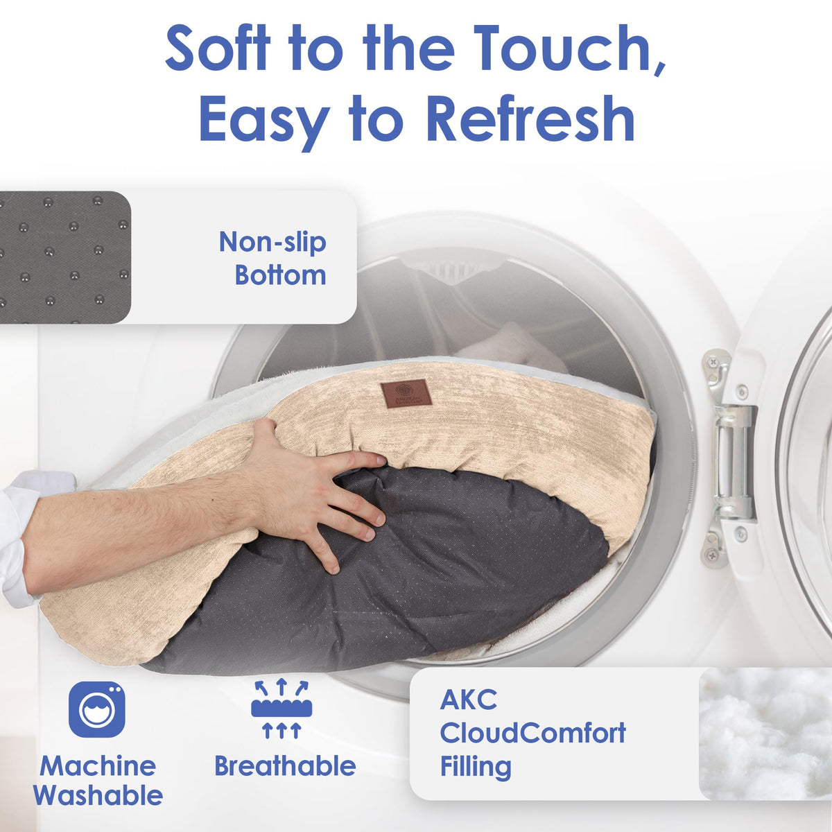 The American Kennel Club Mason Fabric Round Pet Bed Seamlessly Blends Style And Function, Making It A Perfect Addition To Your Home. Its Elegant Mason Fabric Exterior Gives It The Look Of Fine Furniture, Ensuring It Complements Any Decor. Inside, The Plush Sleeping Surface Provides A Cozy, Supportive Space For Your Pet To Rest And Relax. Available In Multiple Sizes: The 23'' Size Is Ideal For Cats And Small Breeds Like Chihuahuas, Dachshunds, And Pomeranians. The 25'' Size Suits Medium Breeds Such As Beagles, French Bulldogs, And Shih Tzus. The 31'' Size Accommodates Larger Breeds Like Border Collies, Labradors, And Golden Retrievers. Designed With Both Pets And Pet Parents In Mind, This Bed Features A Non-Slip Bottom For Safety And A Machine-Washable Design For Easy Care. Whether Your Pet Loves To Curl Up Or Sprawl Out, This Bed Offers The Perfect Blend Of Comfort And Sophistication, Backed By The Trusted Quality Of The American Kennel Club.