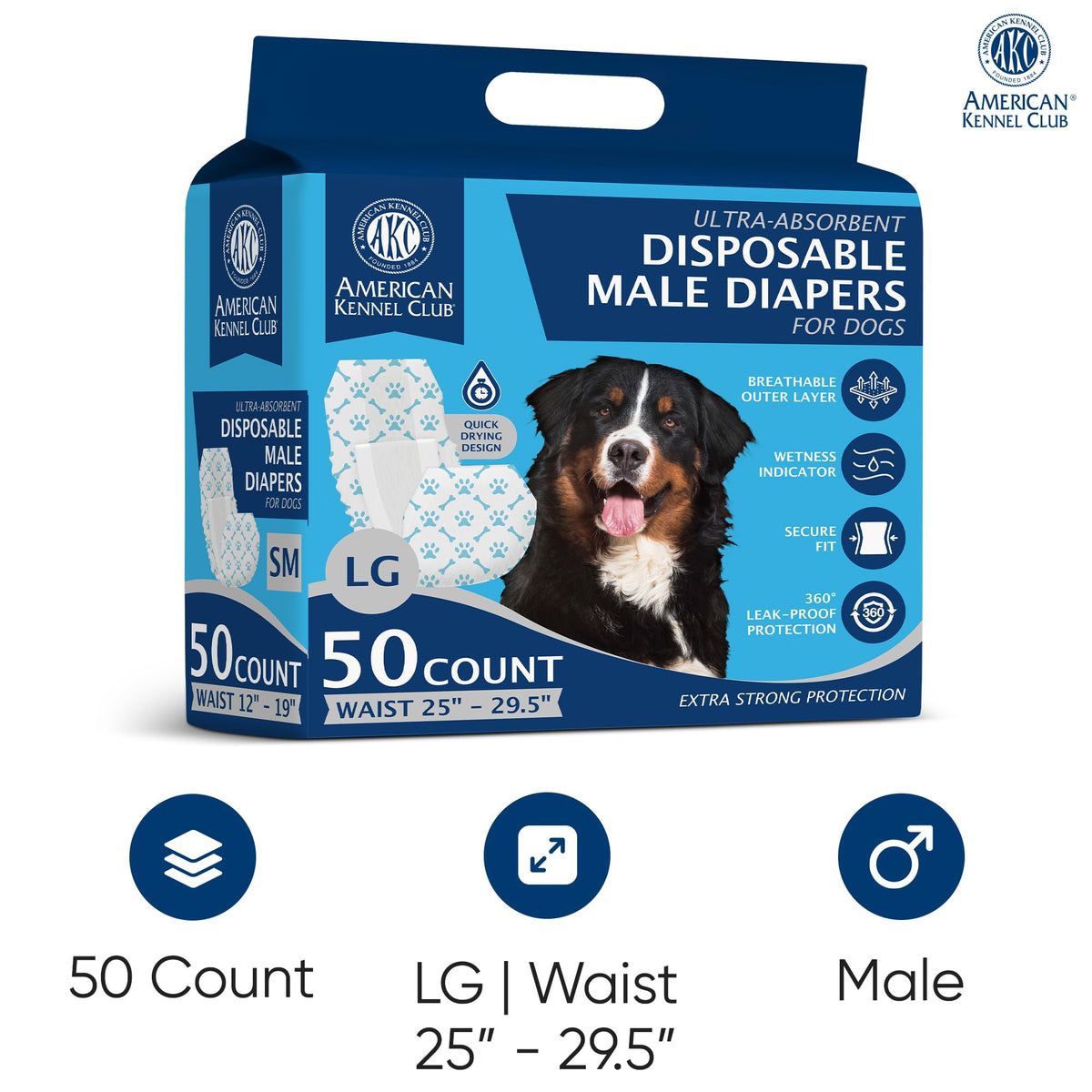 American Kennel Club Male Dog Wrap, Disposable Diapers With Wetness Indicator, Large, 50 Count