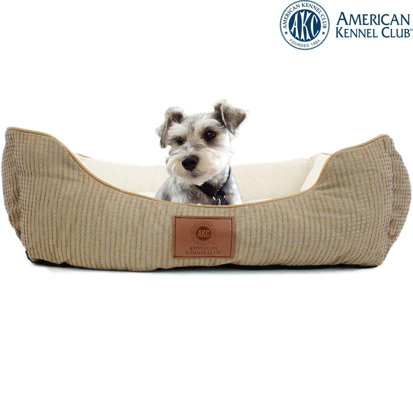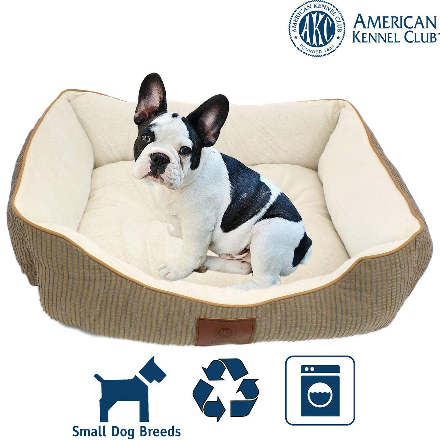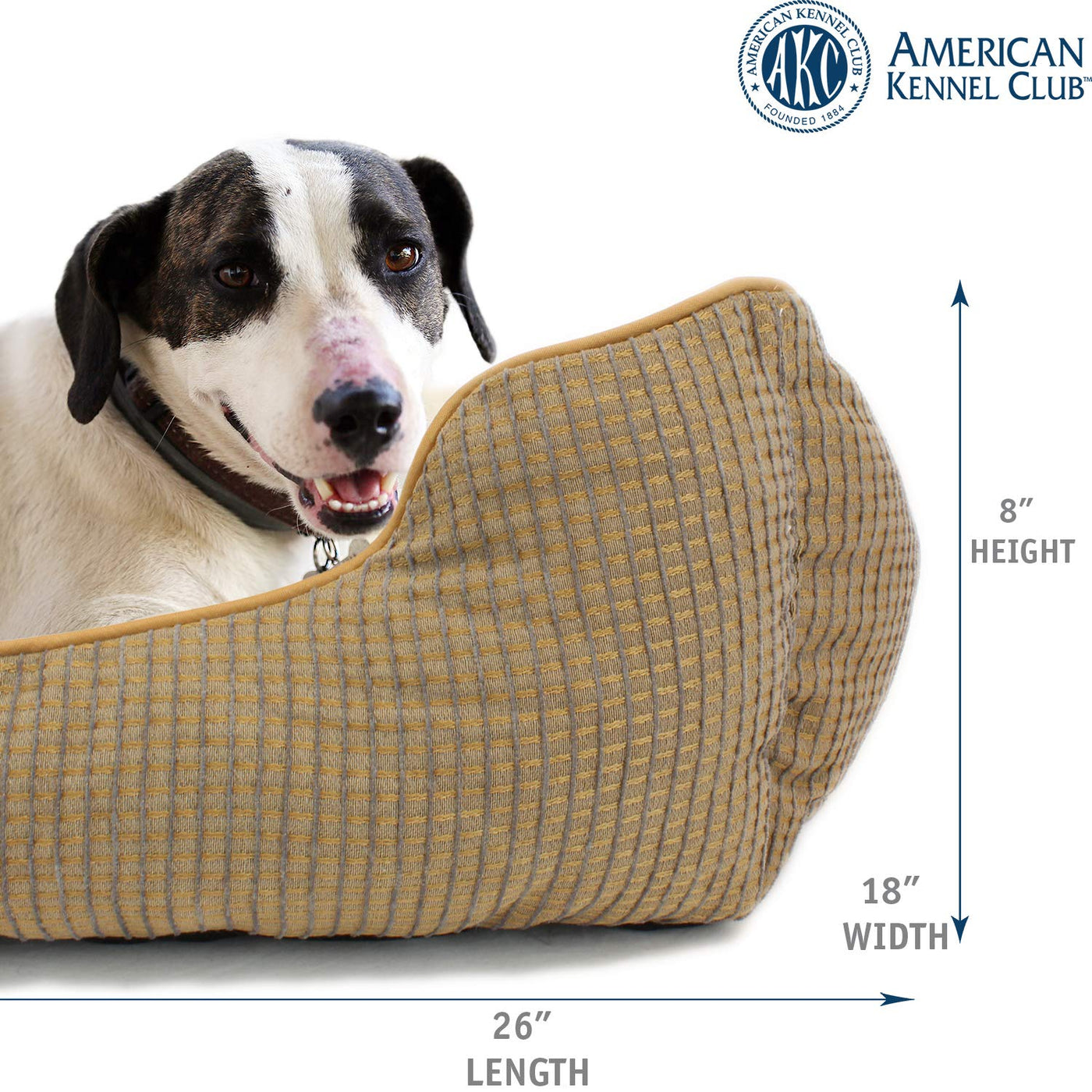 For over a century, the American Kennel Club has led the pack in setting dog standards. Today, we have taken those same high standards in producing our deluxe line of American Kennel Club products made with your pet's individual needs in mind. A strong night rest is essential for dog's happiness and health. AKC dog bed features raised bolstered sides that give your pet a feeling of comfort and helps to promote the nesting instinct. Made with Casablanca fabric and soft sleep surface, This dog pet bed is perfect for any small size dog to sleep in. Machine washable, it will look as good as the day you brought it home. Gift your dog the gift of sleeping on a cloud with the American Kennel Club Dog Bed. - Beautiful neutral colors with a touch of modern design accentuates most home décor - Provides better sleep and health - Durable, non-toxic materials - Easy laundry - Flexible, light and portable - Love it or money back Dimensions: 26x18x8''. Designed for Pug size dog breeds