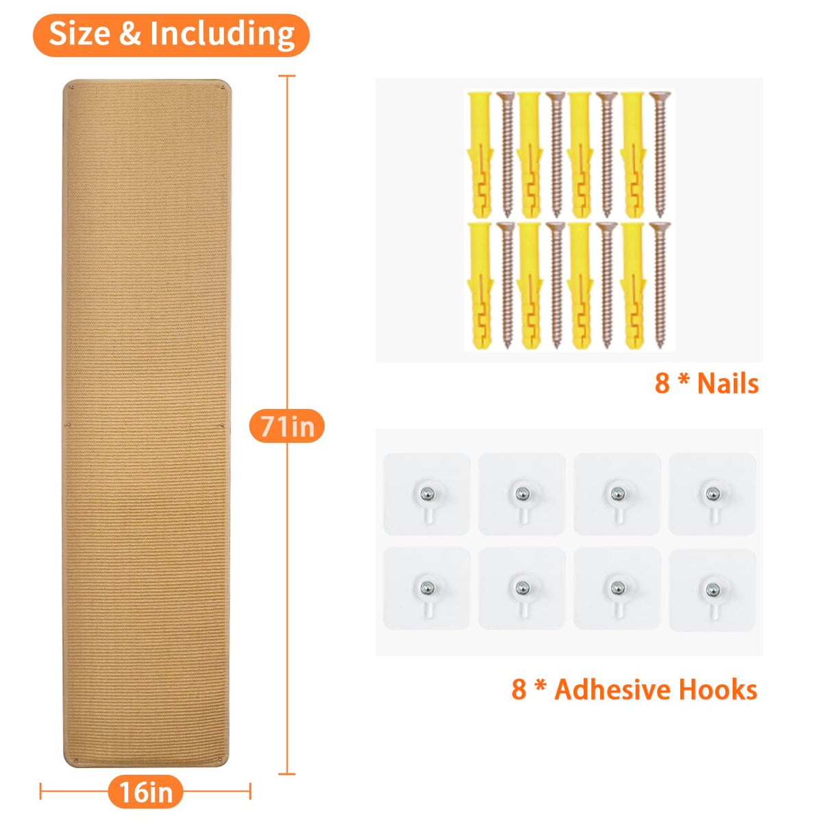 Amfiyq 71X 16 Cat Climbing Wall, Extra Large Cat Wall Furniture, Cat Climbing Wall Scratcher, Cat Carpet, Couch Sofa Protect