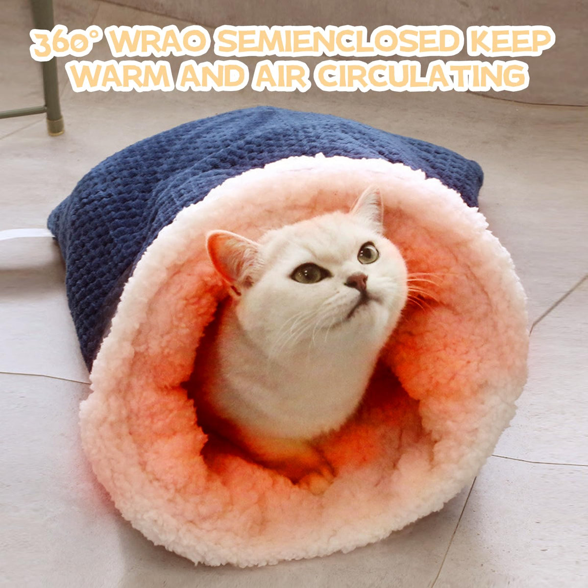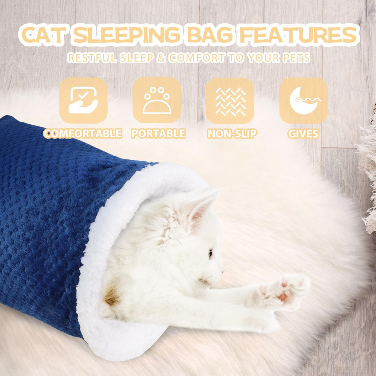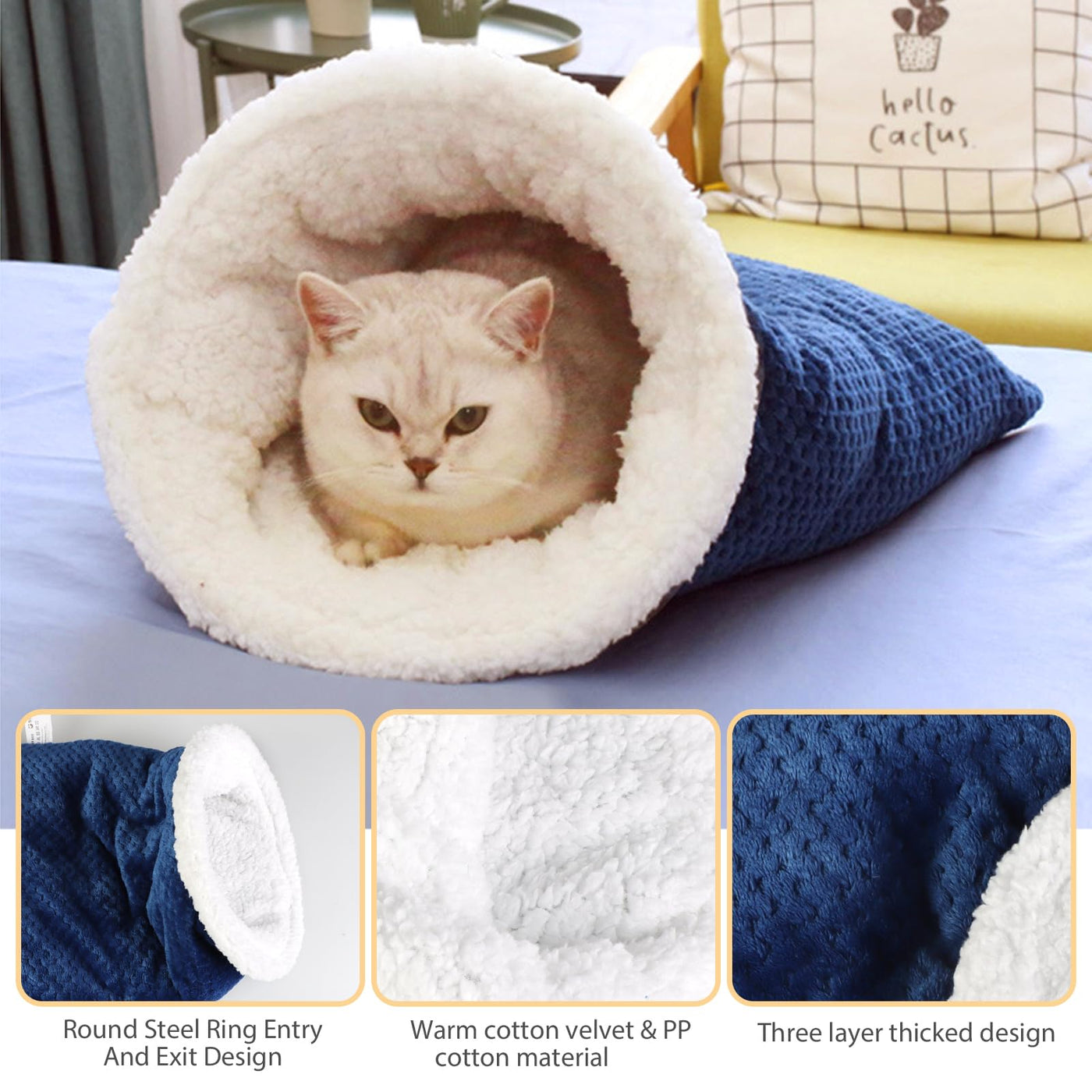 Amiitry Cat Sleeping Bag, Blue, 11 X 17.7 X 15.7 Inches, Cat Bed, Self Warm Winter Sleeping Bag For Indoor Cats, Cotton Material