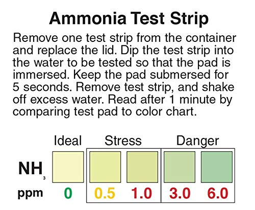 Ammonia NH3 Test Strips, 0-6ppm for Aquarium, Fish Tank and Pond Monitoring [Vial of 25]