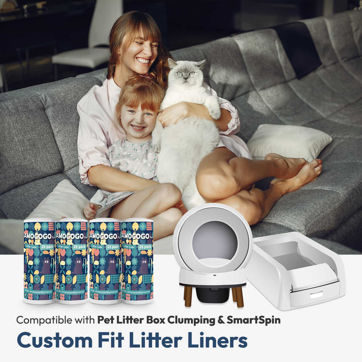 Amogogopet 100 Pack Waste Bin Liners, Compatible With Scoopfree Clumping & Smartspin Automatic Litter Box, Large Capacity Litter