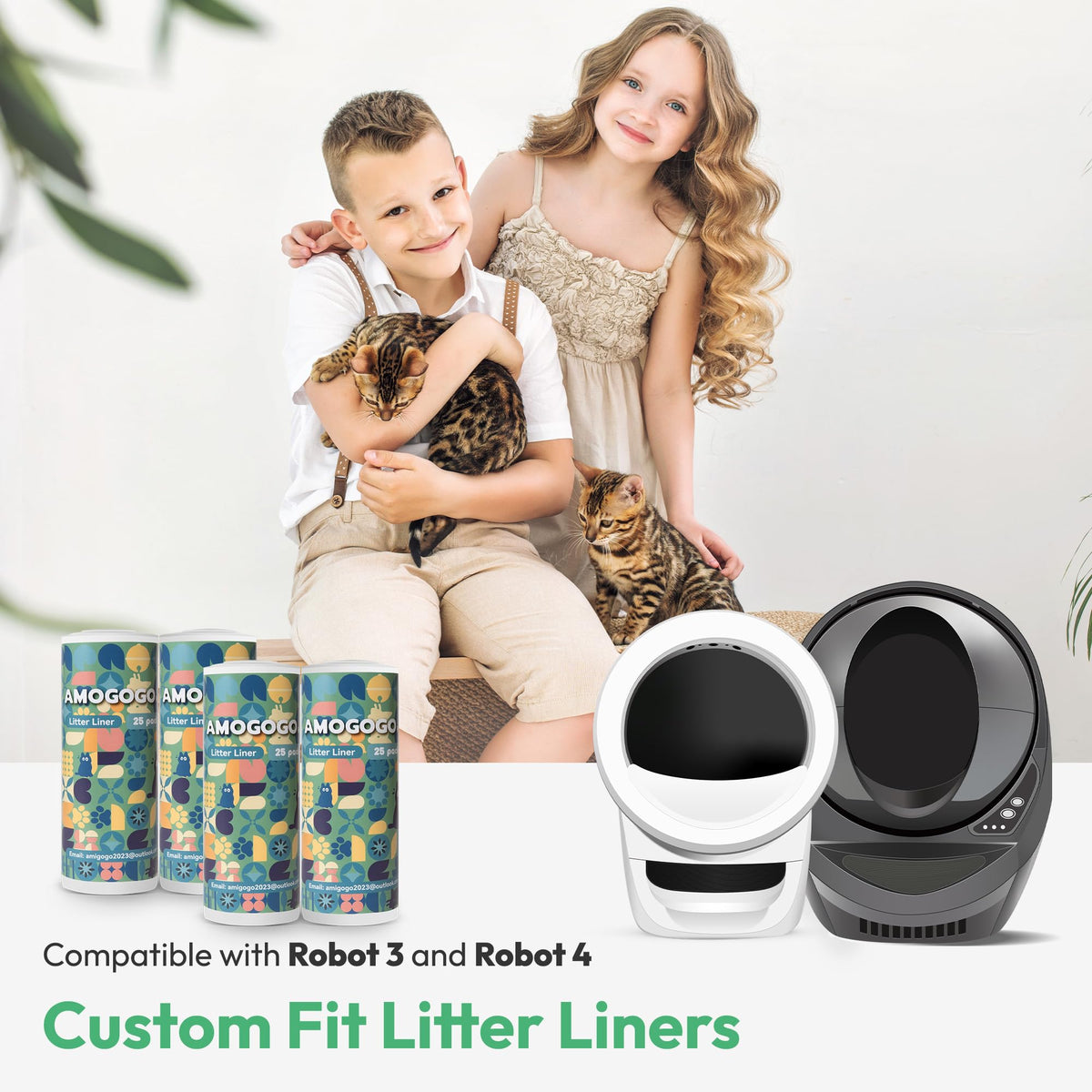 Amogogopet 100 Pcs Waste Bags Liners, Compatible With Litter Robot 4 & 3, Leak-Proof Replacement Waste Bags, Heavy Duty Cat Litt