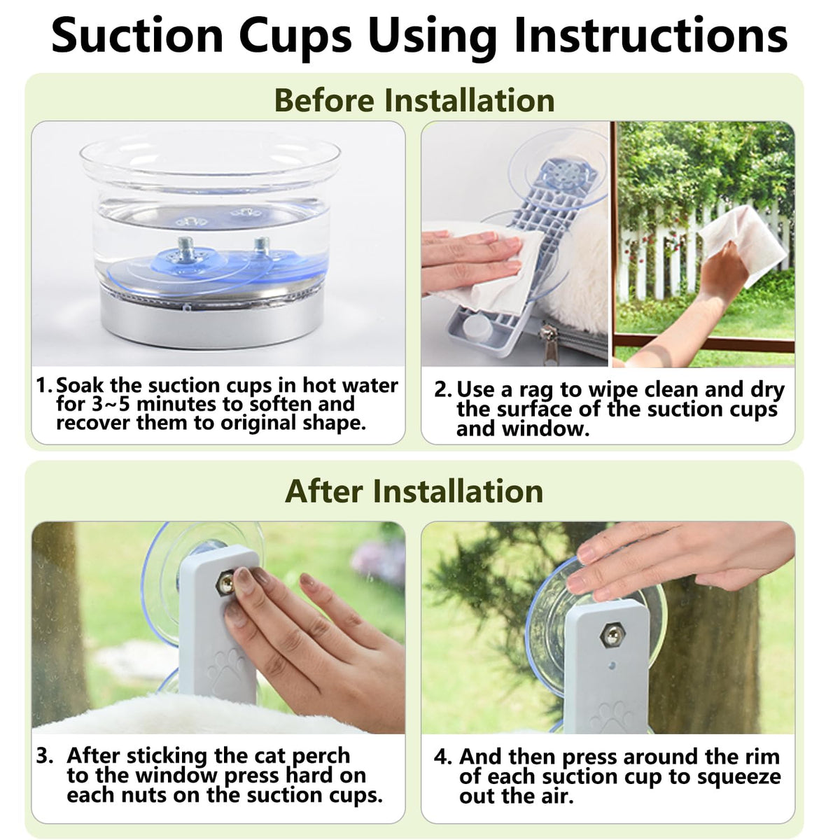 Q: How do I install the cat hammock on my window?A: To install the cat hammock, ensure your window size is at least 23.8 inches in length. Clean the window surface, attach the 4 strong suction cups securely, and place the hammock on the window. Make sure it is firmly mounted before allowing your cat to use it.
