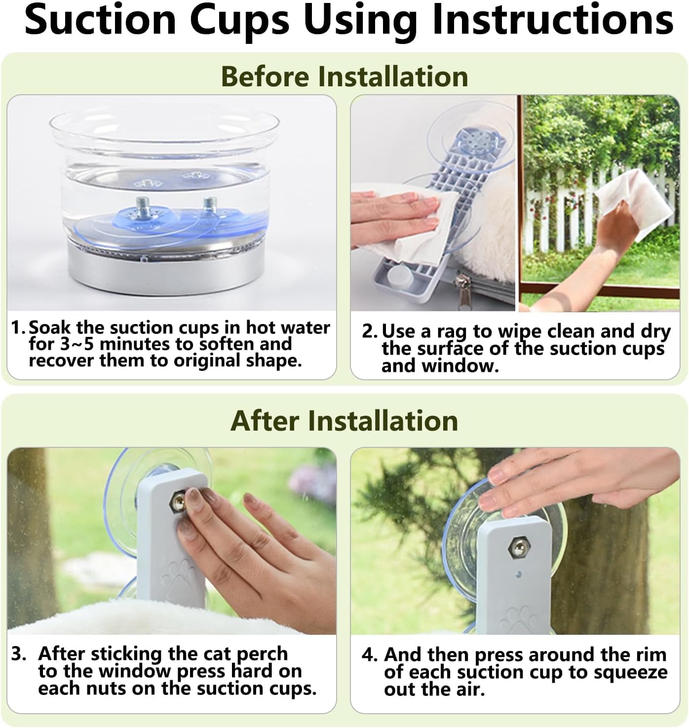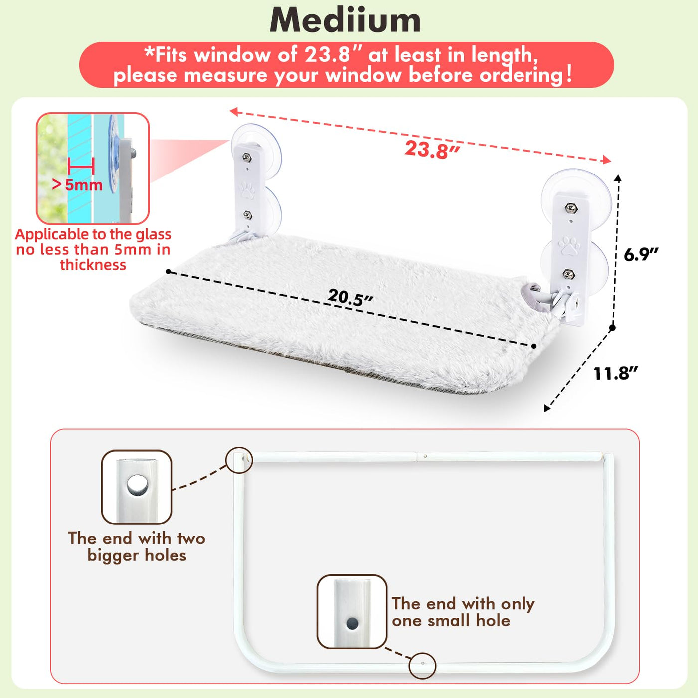 Amosijoy Cordless Cat Window Perch, Cat Hammock For Wall With 4 Suction Cups, Anchor&Screw For Two Ways Of Installation, Solid M