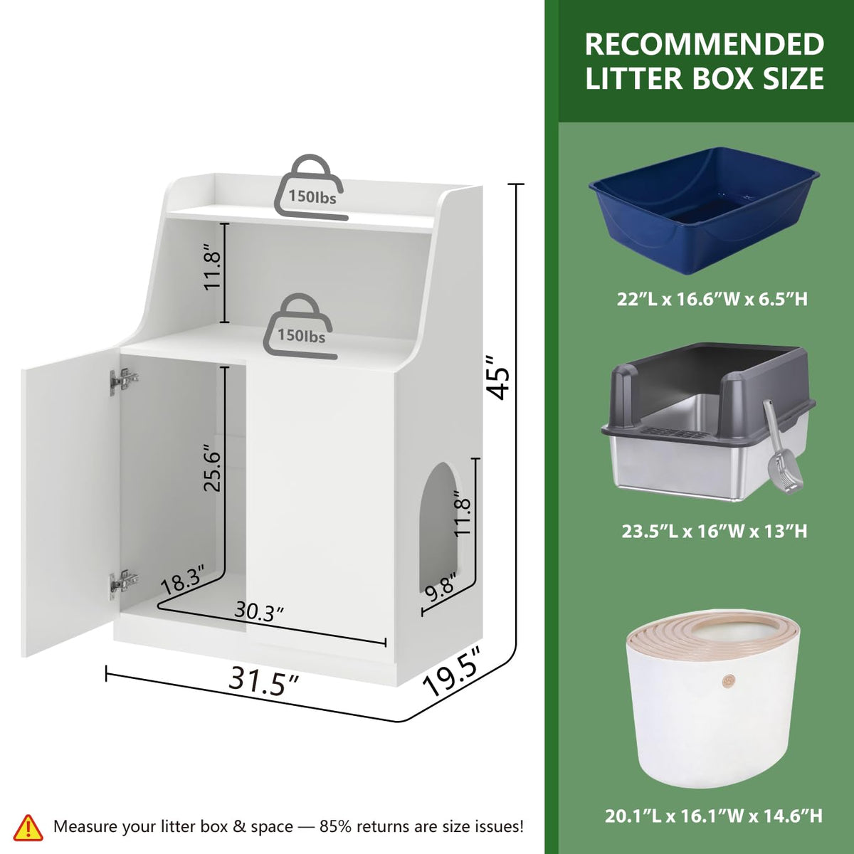 Amunrbrek Large/Tall Litter Box Enclosure, Modern Wooden Litter Box Furniture for XL Litterbox with Open Shelf as Sideboard Cabi