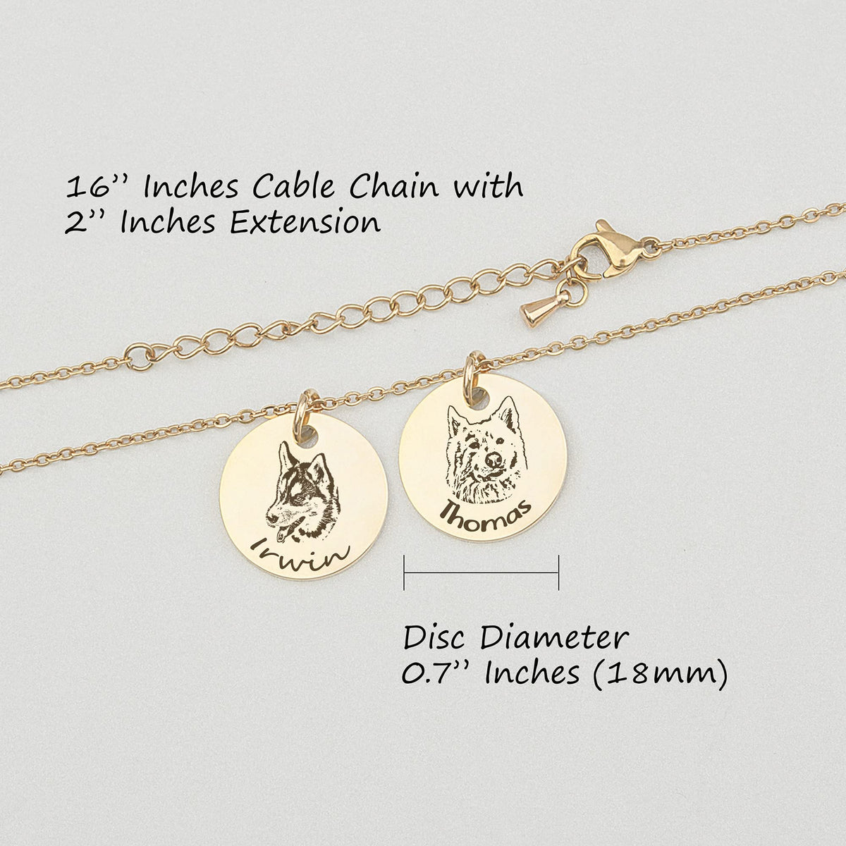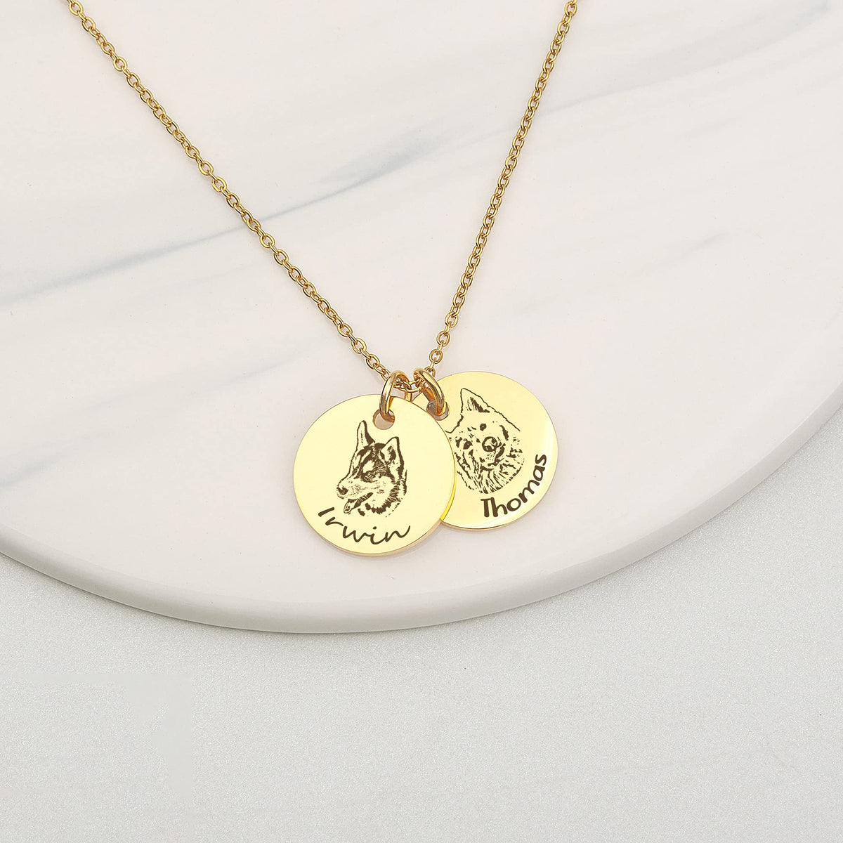 Q: Can I customize the design of the pet portrait necklace?A: Yes, you can customize the necklace by uploading a photo of your beloved pet, which will be transformed into a unique sketch-style portrait to create a meaningful keepsake.