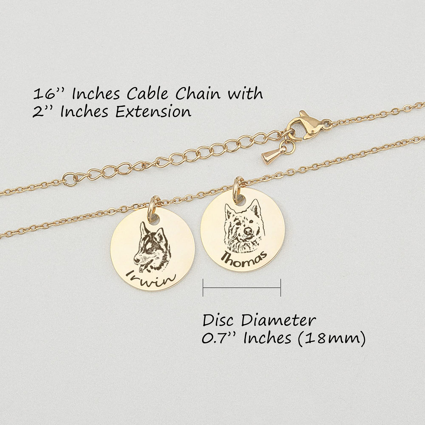 Anavia Personalized Pet Portrait Necklace, Handmade Pet Dog Cat Memorial Jewelry Gift, Customized Round Disc Photo Engraved Necklace Pet Gifts For Animal Lover Dog Mom(4 Disc, Gold)