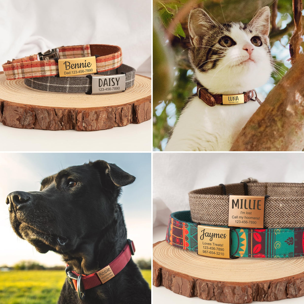 Anavia Slide On Silent Pet Id Tags, S/M/L/Xl Personalized Stainless Steel Cat Dog Tag With Elastic Fabric Band, Engraved Namepla