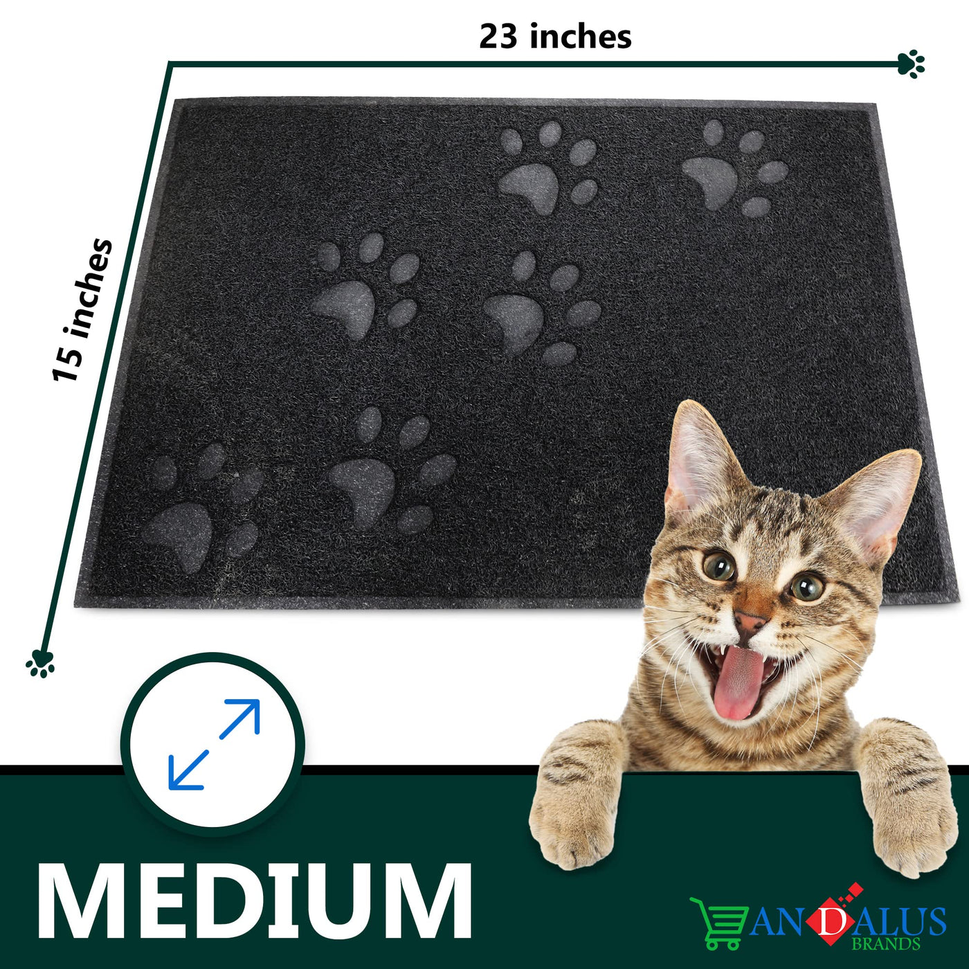 Andalus Premium Cat Litter Mat Pack Of 1-100% Waterproof With Non-Slip Backing Of Litter Box Mat - Soft On Kitty Paws & Easy To Clean Cat Mats For Litter - Black, Medium (23.5' X 15.75')