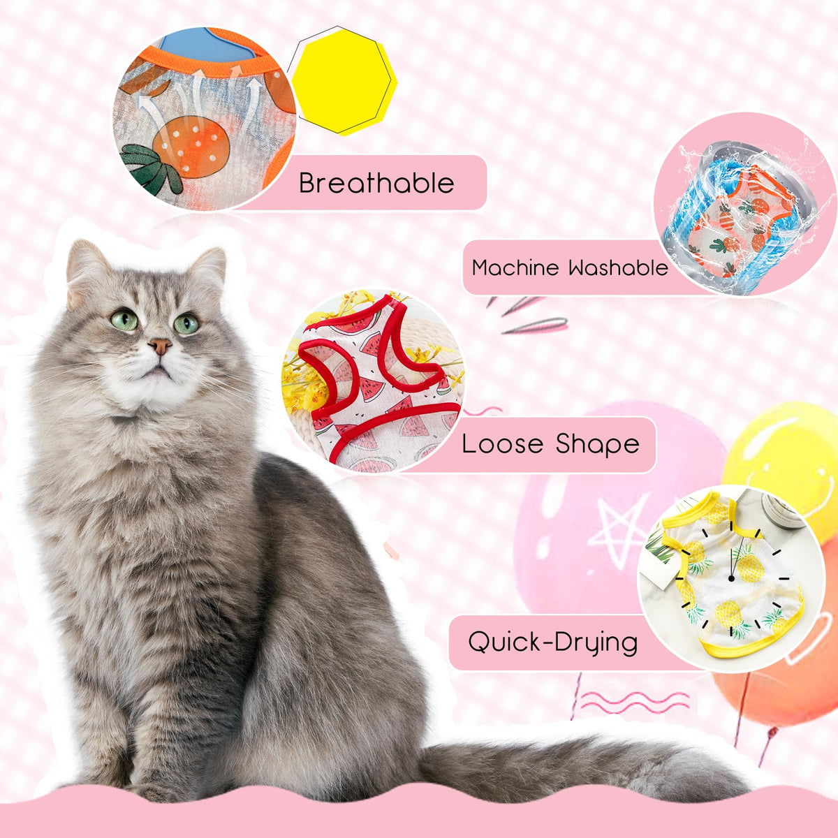 Andiker 3Pcs Cat Clothes, Breathable And Quick-Drying Cat And Dog Clothes With 2 Pets Clothes Hangers Printed Cute Patterns Cat