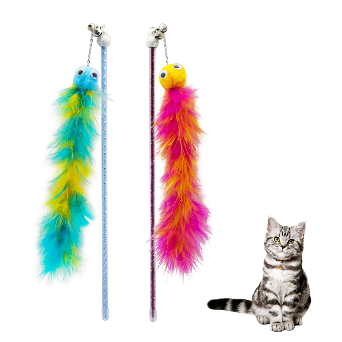 Description: Material: Plush Ball, Feather Color: Green/Blue Weight: 15 G/Pc Size: Rod Length 12 Inches Down Length 10 Inches Package: 2*Cat Wand Toy Tips: 1. The Size Is Manually Measured, And Please Allow A 1Mm Error 2. Due To Different Shooting Lights, The Color May Have A Slight Error, Please Understand, Thank You 3. Please Be Careful When Using The Cat Teaser Stick, Don'T Let The Cat Pull The Feather Too Much, Which May Cause The Feather To Fall Off