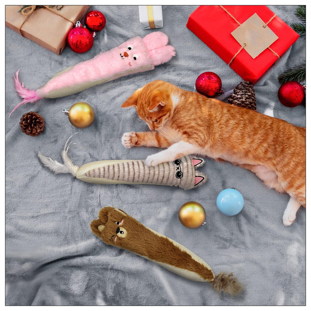 Andiker Cat Toys For Indoor Cats,10.24In Plush Catnip Toy With Crinkle Paper Inside,Fluffy Interactive Cat Toy With Feather And
