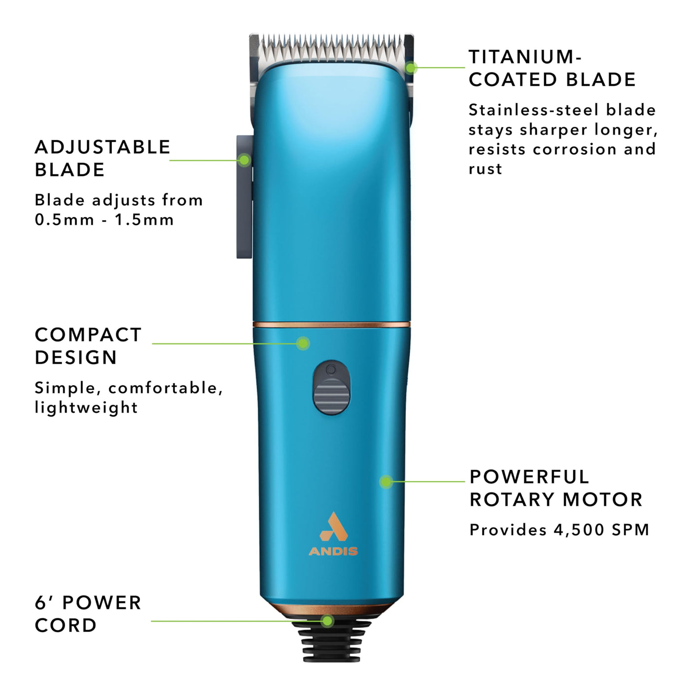 Andis Easy Clip Adjustable Blade Corded Dog Clipper, 11 Piece Kit, Lightweight, Powerful Motor, Blue, 560814