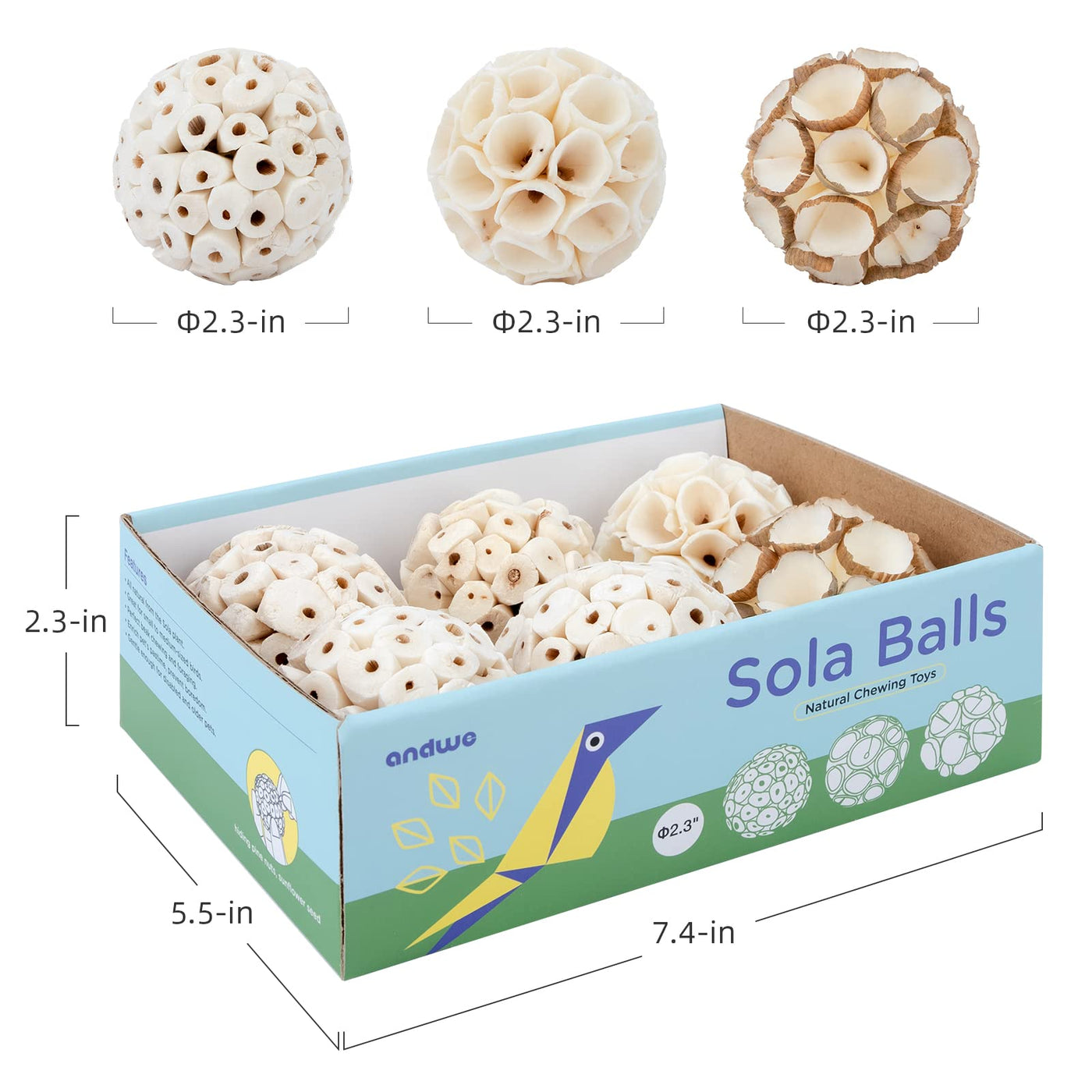 Andwe Bird Toy Sola Ball - Natural Soft Chew Shredding & Foraging Toy For Cockatiel Conure Quaker Parrot Budgie Parakeet Rabbit Bunny Guinea Pig Chinchilla Fun & Easy To Shred Bird Toys - Sola Balls Are Made By Air-Dried Natural Sola Plant Wood, Which Were Tied Tightly As A Ball And Cutted By A Consistent Size For Your Pet Bird To Catch It As A Foot Toy Or Shred Down By Their Beak As A Chew Toys. Those Sola Balls Are Also Can Be An Excellent Foraging Toy, If You Stuff Some Bird Snacks Or Treats Inside The Sola Ball Toy For Your Birds To Seek, Make Them Busy And Away From Boredom For Creating More Enjoyment Time Entertainment & Active Toys - Birds Needs Have Some Destructible Toys To Stimulate & Entertain Them, No Matter To Their Foot Or Beak, Which Is Good For Bird Mental Healthy. Like In The Wild, Birds Chew The Branches, Sola Ball Toys Are A Good Way To Satisfied Them To Fulfill Instinct Desire To Chew Or Shred. Birds Enjoying To Wrecked Toys, Like To Rip Those Balls Off Pieces, And Continuously Throw The Shredding Ball Off The Play Stand To Watch It Fall. Help To Keep Birds From Chewing Furniture Chewable & Fun & Lightweight Sola Bird Balls - Sola Balls Measure 2.3-Inch In Diameter, Included 6 Balls Per Box. Be A Classic Bird Foot Toy Which Is Available Break Apart Simply, Birds Will Have Fun Shredding Them, Since It'S Easy To Grabbed By Bird Beaks Or Claws To Shredding Or Chewing. Super Easy For Pet Birds Of All Ages And Abilities To Grab, Pick Up And Play With, You Might Found Pet Bird Mates Work Together To Throw Balls On The Floor Its Recommend For All Pet Birds Or Other Small Pets, No Matter For Your Budgie, Lovebird, Cockatiel, Lorikeet, Parrots, Cockatoos,Parakeet, Conure, Amazon & African Grey, Or Some Small Pets Like Hamster, Gerbil, Rats, Chinchilla Notice: If You Are Searching For A Long-Last Toys For Your Pet Birds, Those Sola Bird Balls Are Not Good Choice For You. Since Most Of Pet Birds Seem