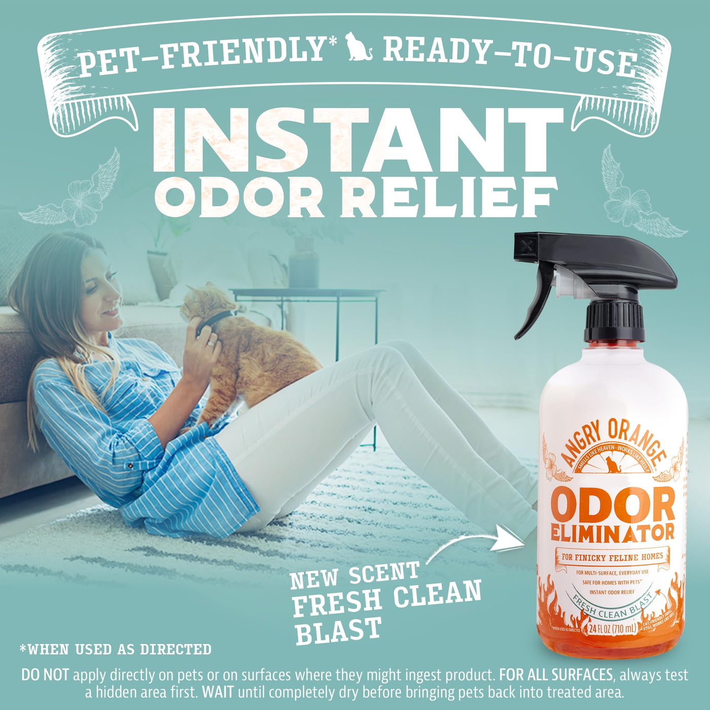Angry Orange Pet Odor Eliminator For Cat Urine, Carpet Stains, And Strong Smells - Fresh Scent Odor Remover- 24 Oz