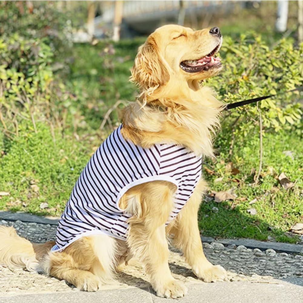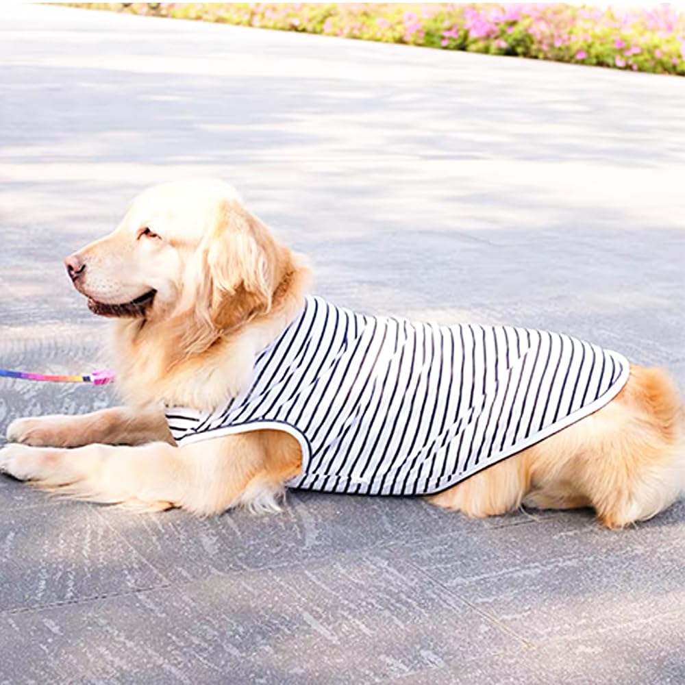 Aniac Summer Dog Shirt For Medium Dog Girl Boy Cotton Striped Dog T-Shirt White Basic Tank Top Sleeveless Doggy Vest Cooling Pet