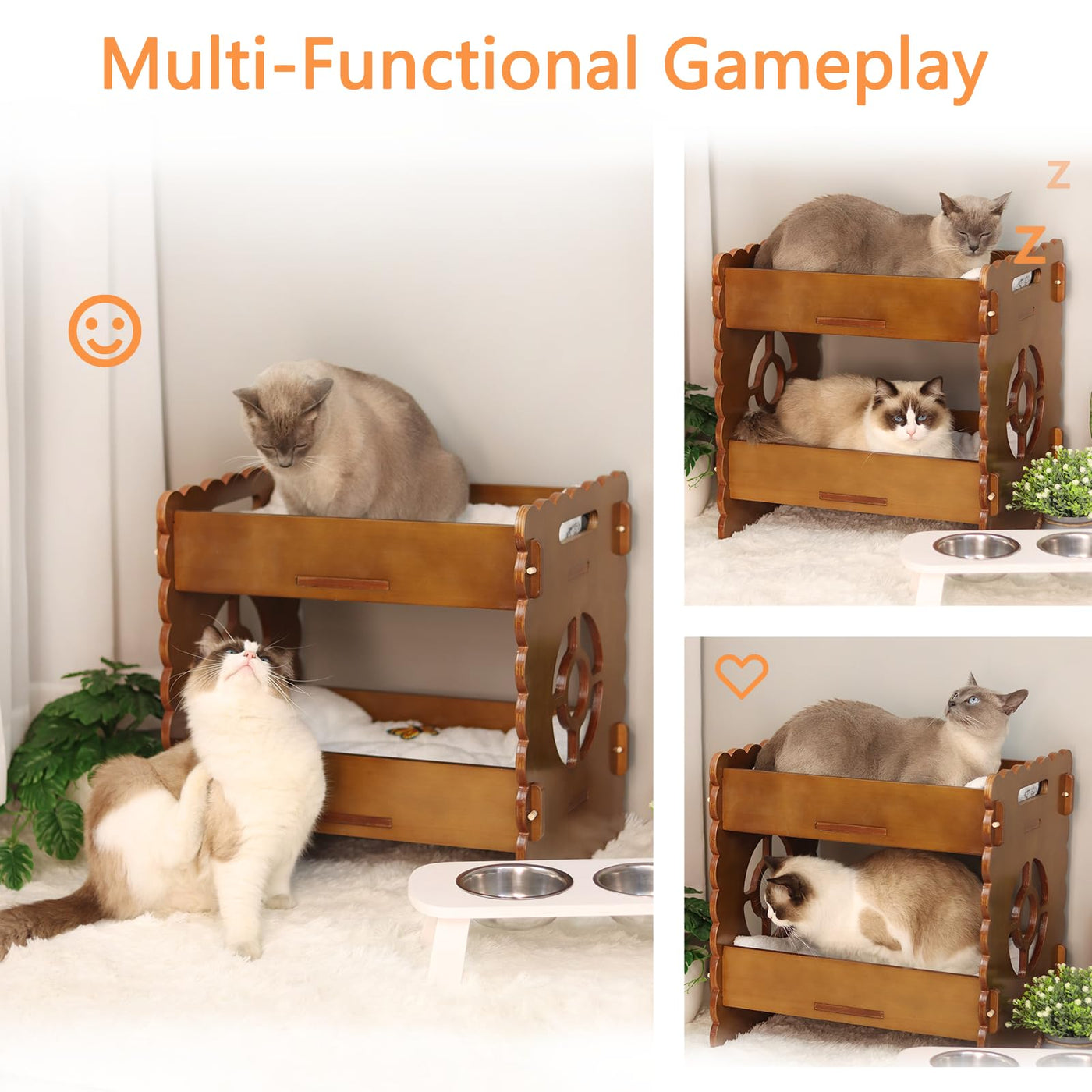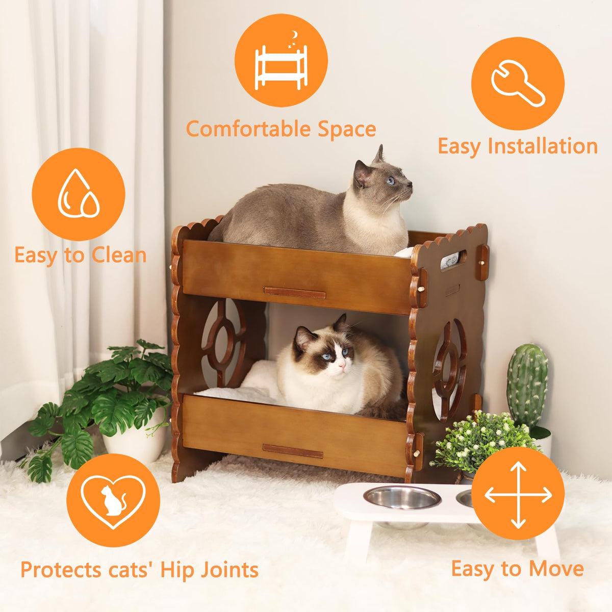 Ankuliy Wooden Cat Bed,Elevated Cat Bed Furniture,Cat Bunk Beds For 2 Indoor Cats,Wood Cat Condo With Mattress,Protect Cat'S Hip