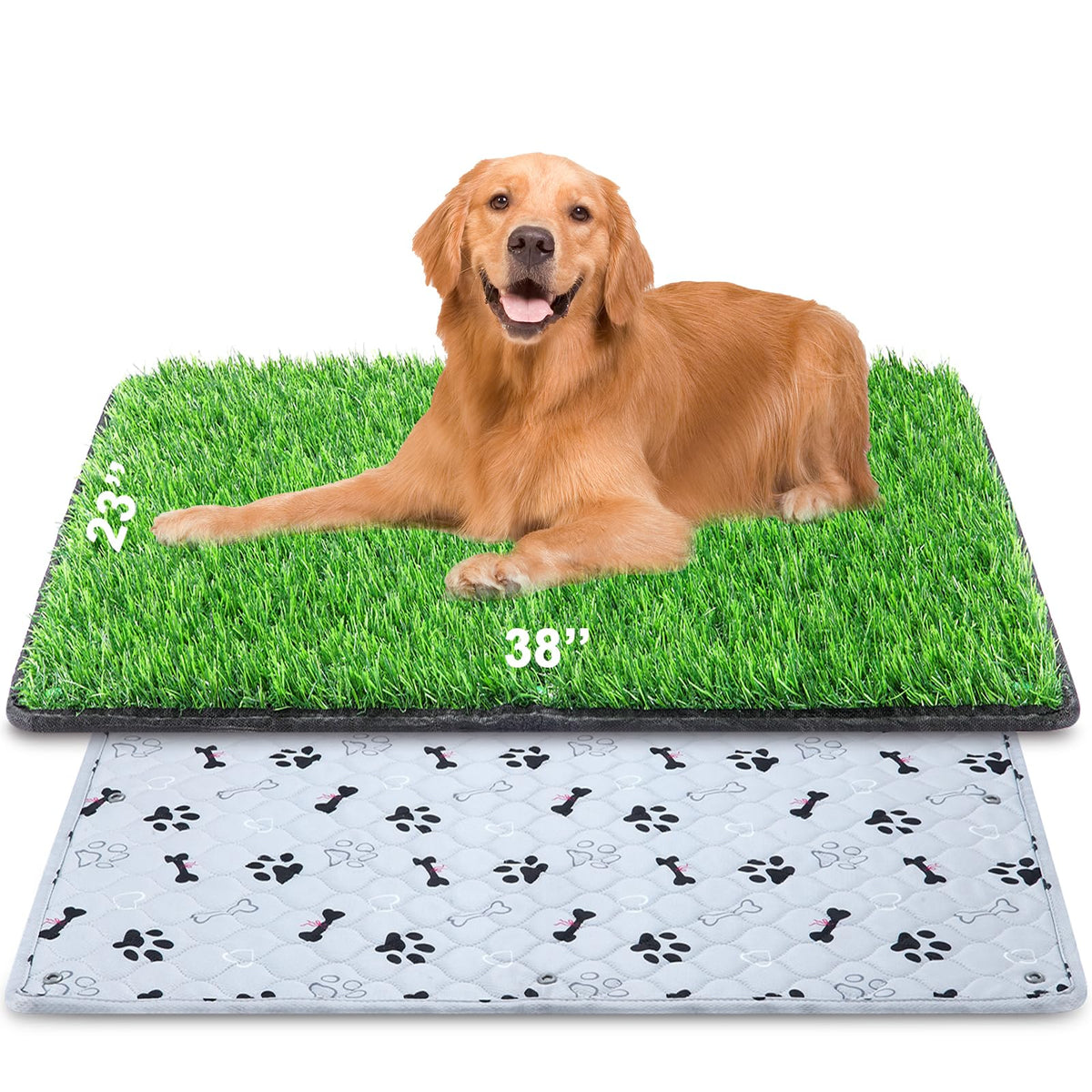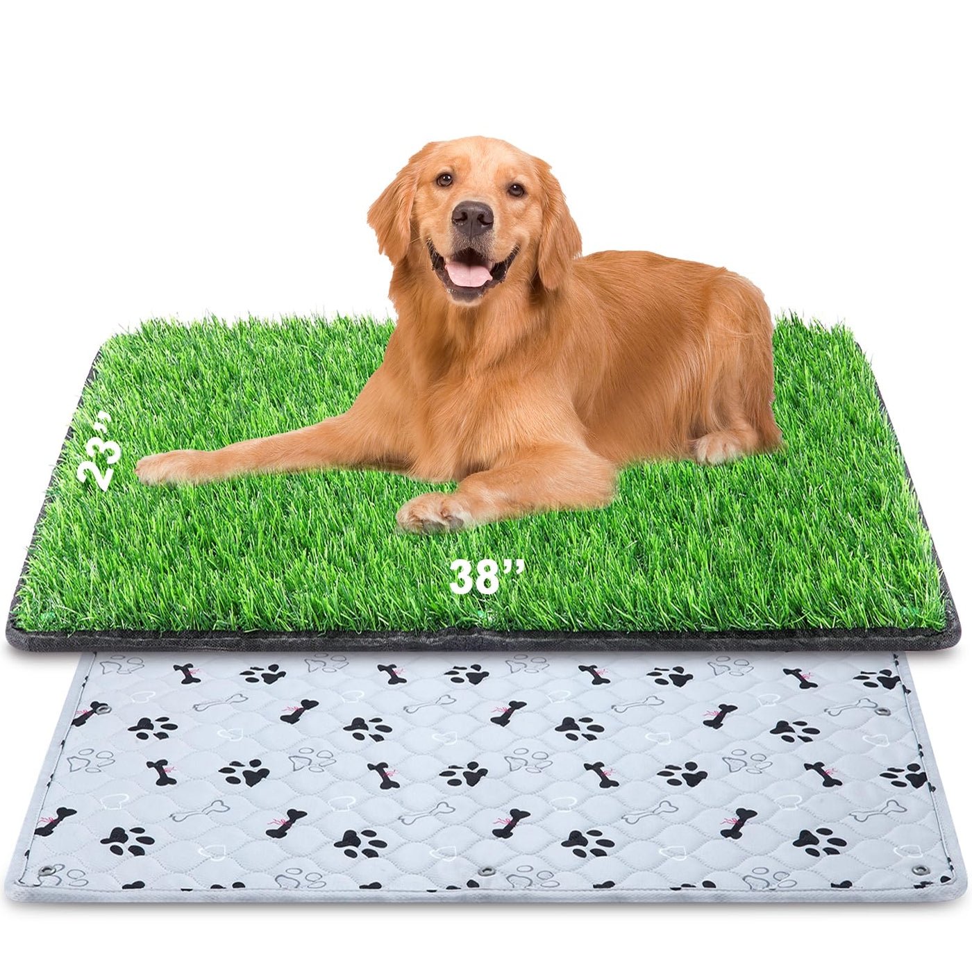 Annexfun Dog Grass Mat with Pee Pad 38 23 '', Large Dog Litter Box Indoor Artificial Turf Grass Porch Waterproof Patio Potty Tr