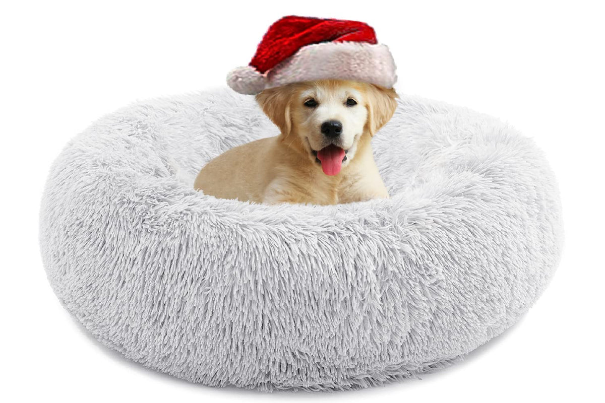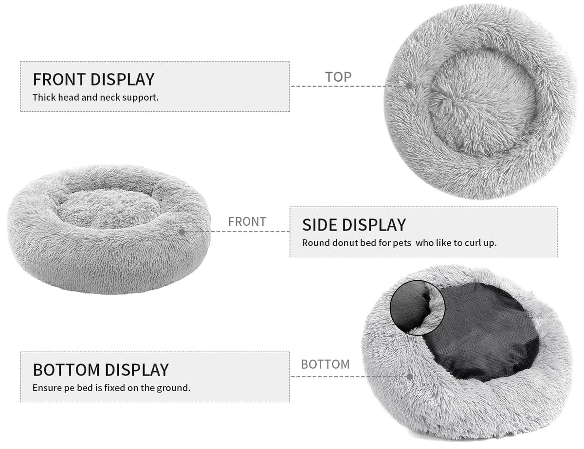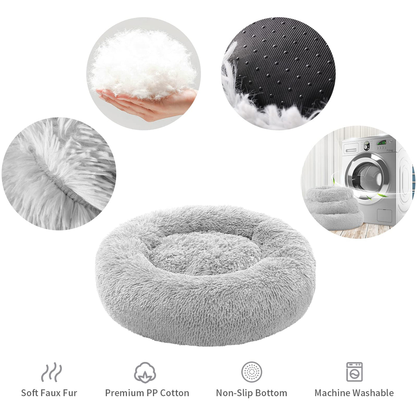 Anti-Anxiety Donut Cat & Dog Bed - Round, Cozy, Plush, Machine Washable, 20x20inch Grey