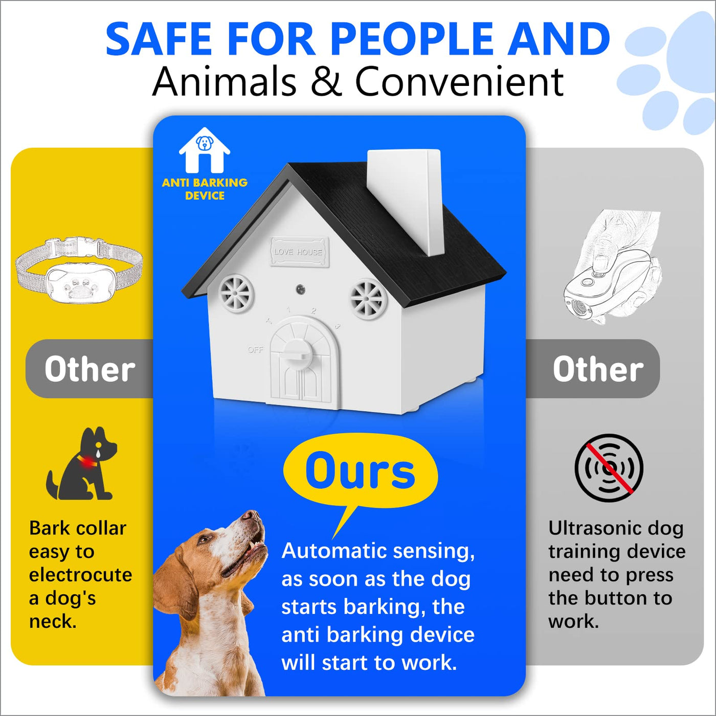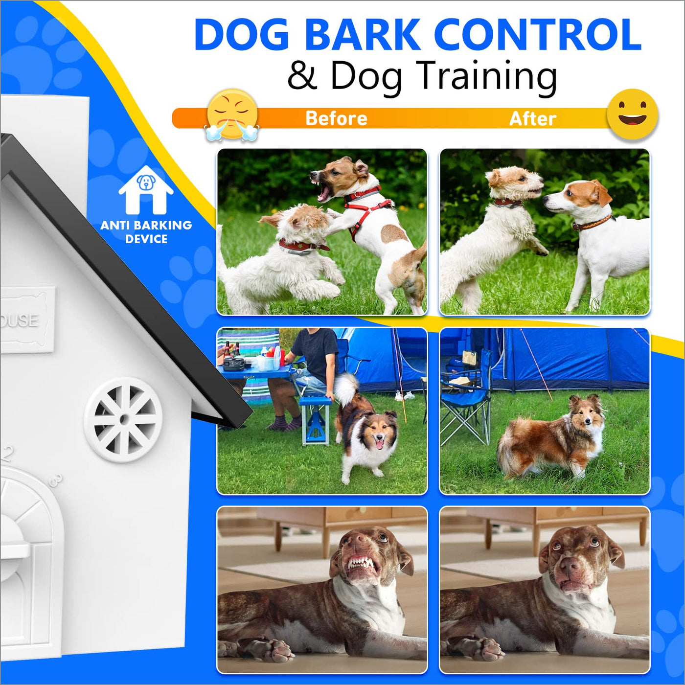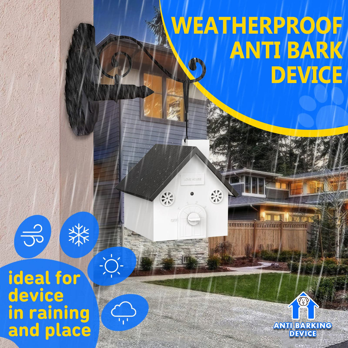 Trying to relax, but can't stand the annoying noise of your neighbor's dog barking? Face your neighbor and turn the lever to your preferred range setting. Now you can finally relax! This Anti Barking Device is today's most popular and classic bark stopper and corrector. Wish you could train your dog not to bark at visitors or strangers? The Anti barking device has an LED indicator that notifies you when an ultrasound is emitted, and soon your pet will be trained to be quiet when you need a dog barking deterrent. The Anti Barking Device is safe for animals, plants, and humans and will successfully train your pup not to bark at the wrong time. [Features] 1. Anti Barking Device Defer noisy barking by harmless ultrasonic sound. 2. Anti Barking Device Range up to 50 feet. 3. Anti Barking Device Four adjustable ultrasonic volume levels(including a test mode). Test-used to verify the microphone and speaker are functional. Anti Barking Device low Range-up to 15 feet/5 meters (Suggest testing indoors). Medium Range-up to 30 feet/10 meters. High Range up to 50 feet/15 meters. 4. Weatherproof for outdoor use. 5. LED light flashes for low battery indication. [ Caution] Please read the manual before using this Anti Barking Device. Keep at one arm's length away from the human ear(s) to avoid hearing damage if a dog begins barking while you are setting up, mounting, or hanging the dog Bark Control Outdoor Birdhouse. Anti Barking Device is not suitable for deaf or hearing impaired dogs. Each dog will respond slightly differently to ultrasound at first and will not stop barking at first, so it takes up to 2 weeks to train.