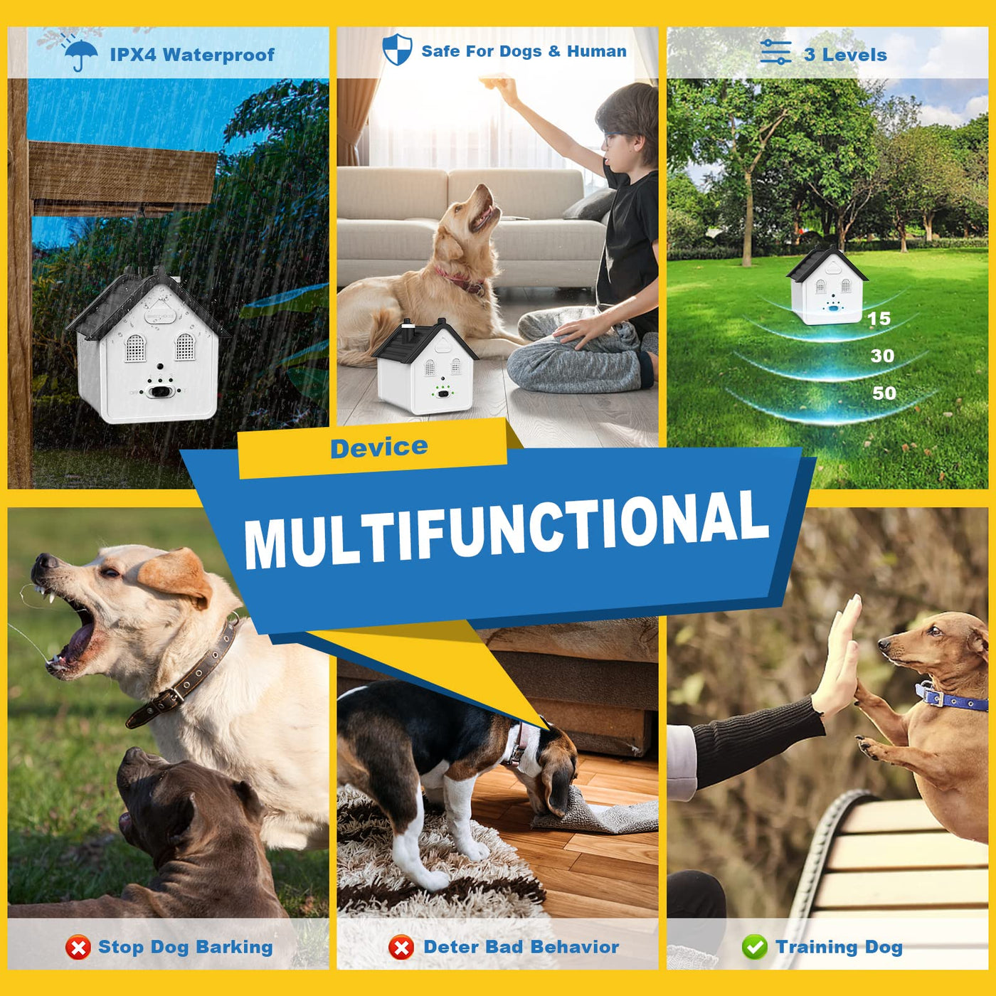 Anti Barking Device, 3 Levels Ultrasonic Dog Barking Control Devices & Dog Behavior Training Tools, 50 Ft Outdoor Waterproof Bark Box For Dog All Size