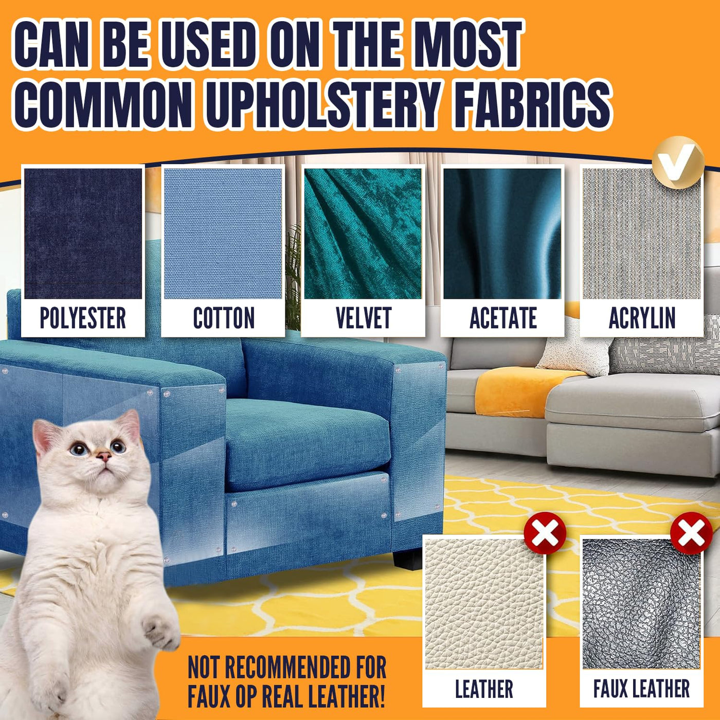 Anti Cat Scratch Furniture Protector-12 Pack Single Side Couch Protector For Cats, Clear Cat Scratch Deterrent For Door Walls