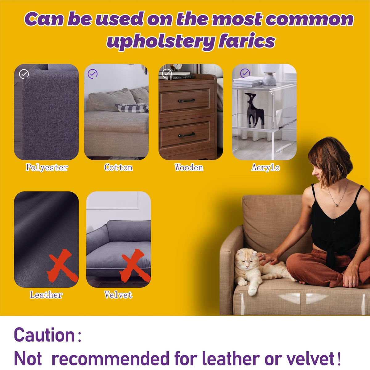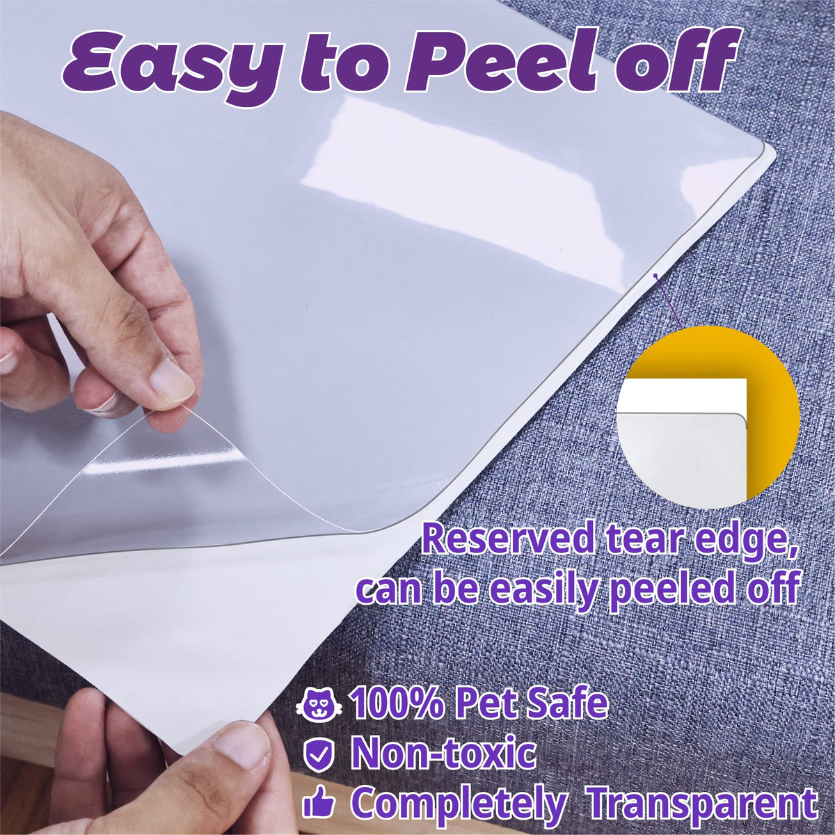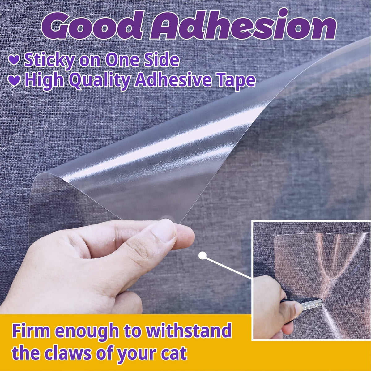 Easy tear off and installThere is a pre-cutting gap in one end of each sheet make the cat training tape easy to be take off from backboard and installed to sofa without effort Better glueWe improve the stickiness of these cat couch protectors make it two times more sticky than competitors and has no residue when uninstall The thickest sheet in marketEach cat sofa protector reach 15mm in thickness it will not ruined by your kitten so easy Odorless & invisible armorade by non-toxic vinyl these couch guards for cat has no weird chemistry smell and 100% safe to pet Totally transparent after install to your couch WarningWe do not recommend to use this tape for cat on velvet sofa or leather furniture