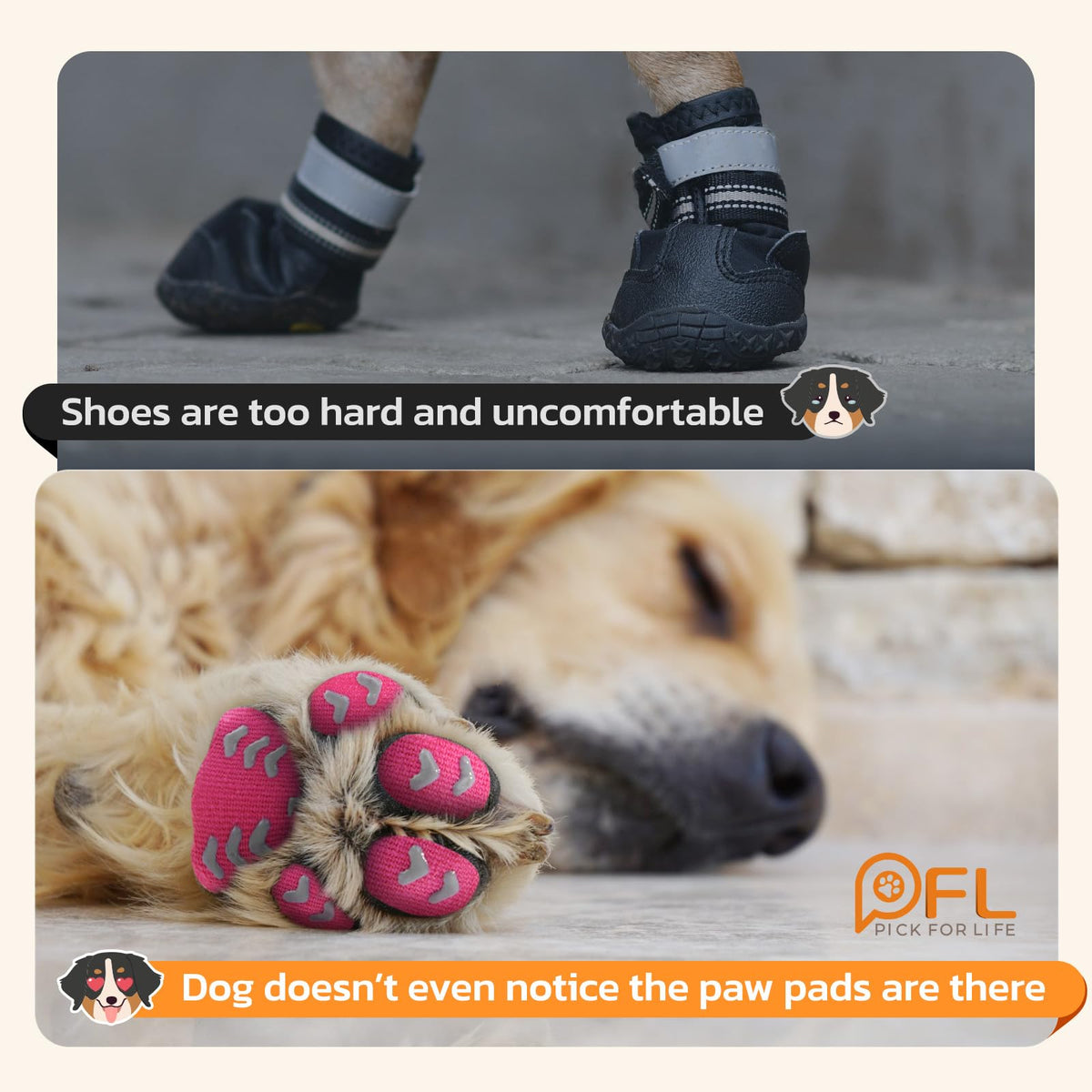 Pick For Life Dog Paw Pads Are Designed For Senior Dogs With Weak Legs/Hips.The Bottom Of The Paw Pads With Anti-Slip Rubber And It Can Help The Dogs Stand And Walk On The Hardwood Floor Or Any Smooth Surface More Easier. Compare To The Dog Booties/Socks, Dog Paw Pads Is Thin And The Dogs Would Not Mind Them At All. Give It A Try. This Simple Product Would Be Life Saver For Your Fur Baby.