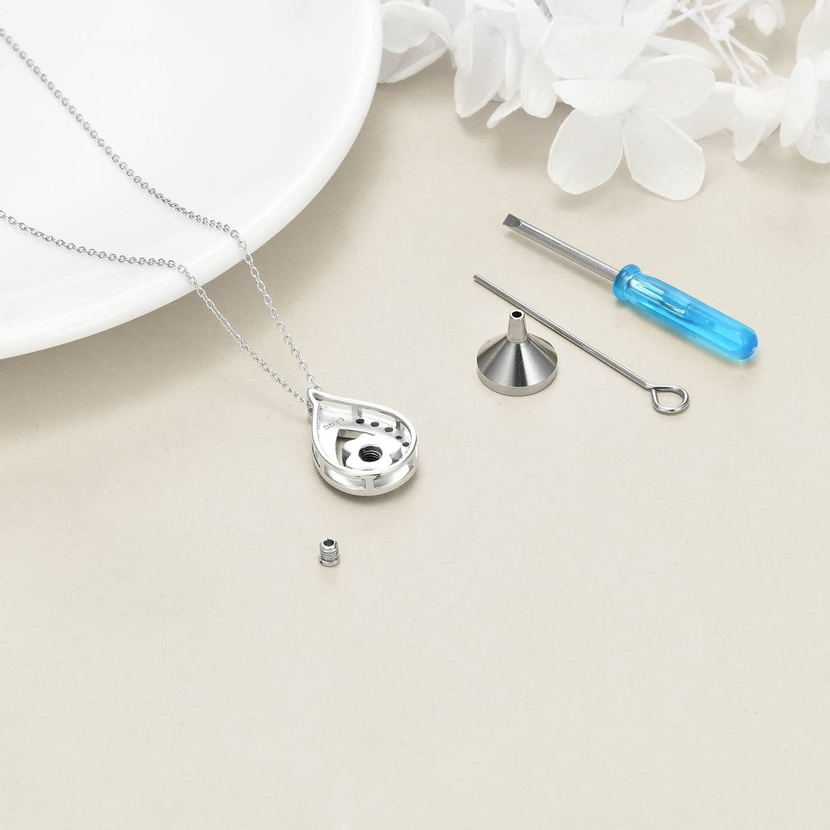 Aoboco Pet Print Urn Necklace For Dog Ashes Sterling Silver Teardrop Cat Ash Cremation Jewelry