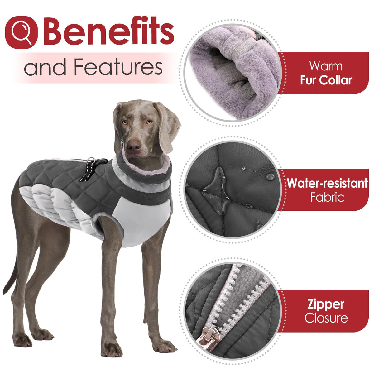 AOFITEE Winter Dog Padded Coat with Reflective Straps & Zipper, Elegant Patchwork Dog Jacket Windproof Fleece Vest, Warm Dog Apparel Clothes for Cold Weather.