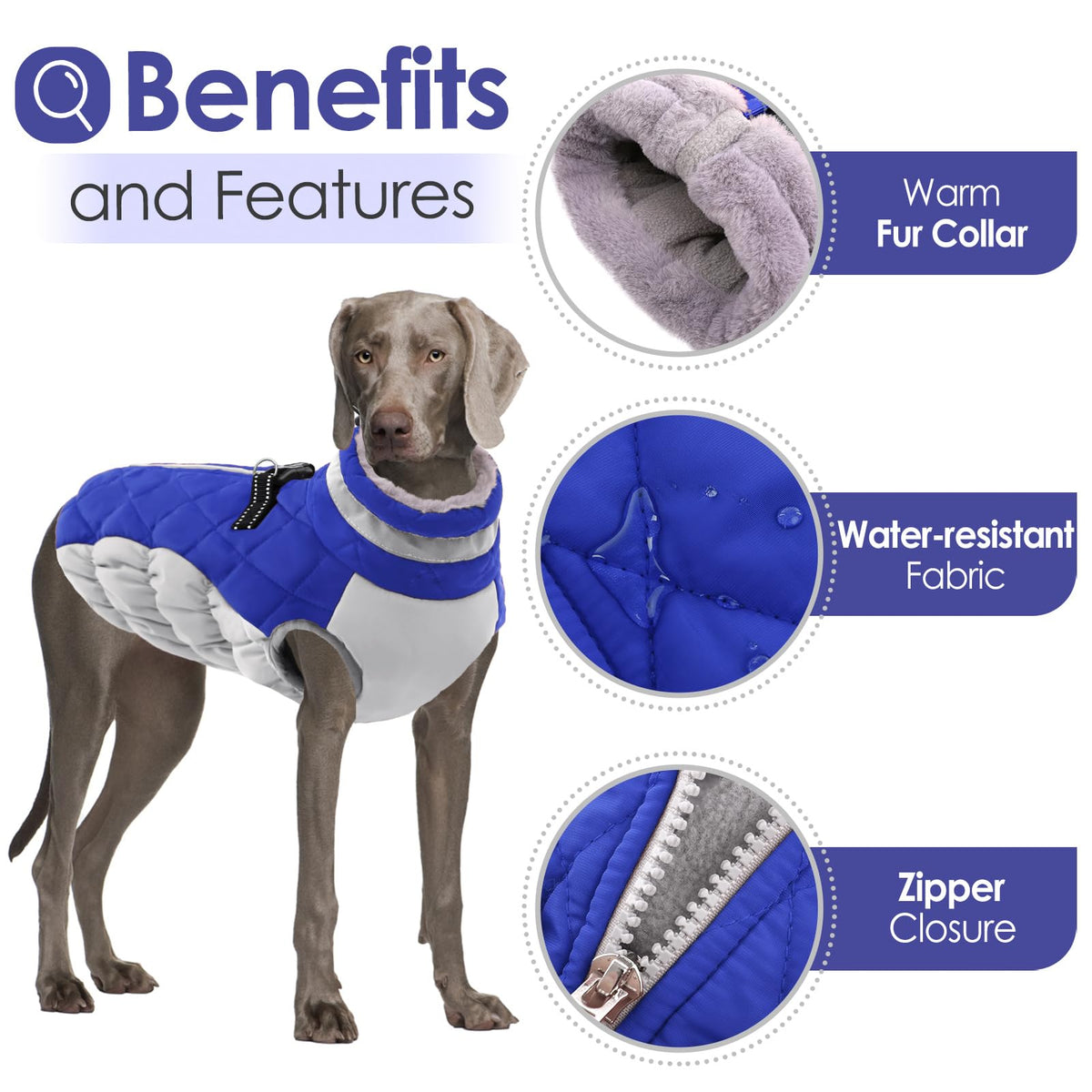 Aofitee Winter Dog Coat Warm Fleece Dog Jacket For Cold Weather, Reflective Zip Up Puppy Dog Sport Vest With Leash Rings, Outdoor Pet Sweater Apparel Clothes For Small Medium Large Dogs, Blue M