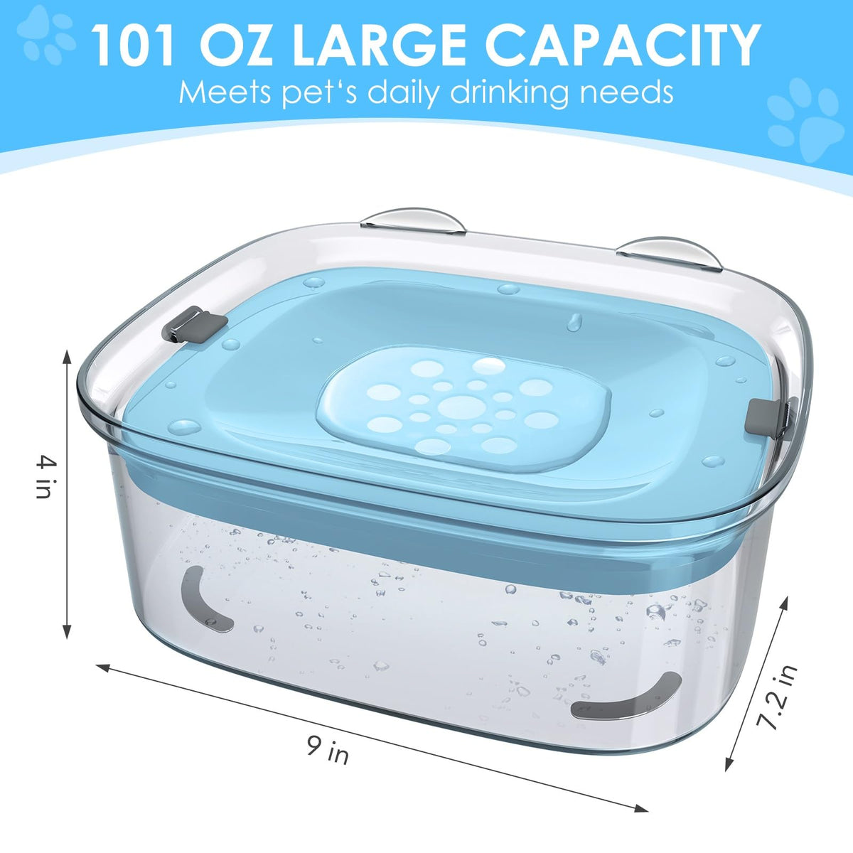 Aonkey 3L Dog Water Bowl No Spill, 101Oz Large Spill Proof Dog Bowl Reduce Refill, Anti Splash No Mess Dispenser Dripless Slow D