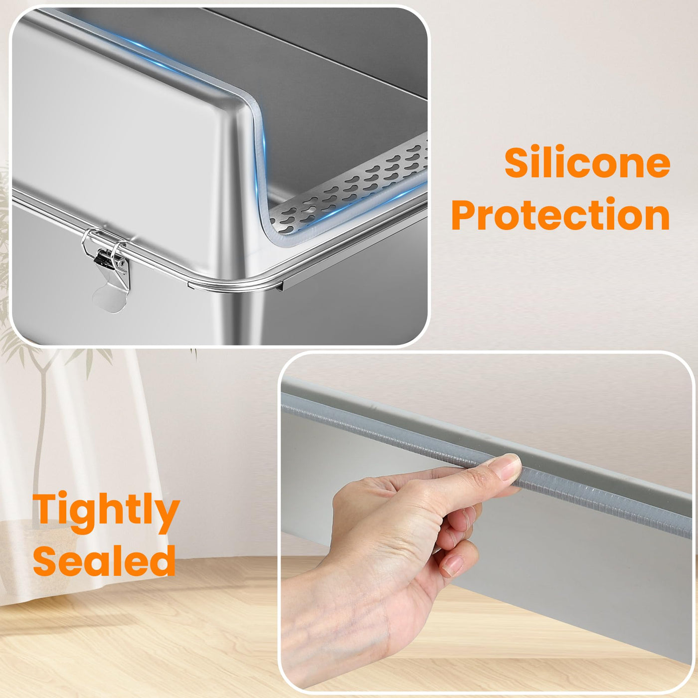 Aothey Stainless Steel Litter Box With Metal Lid And Scoop - Enclosed Metal Litter Box For Large Cats, Rust-Resistant, Odor-Cont