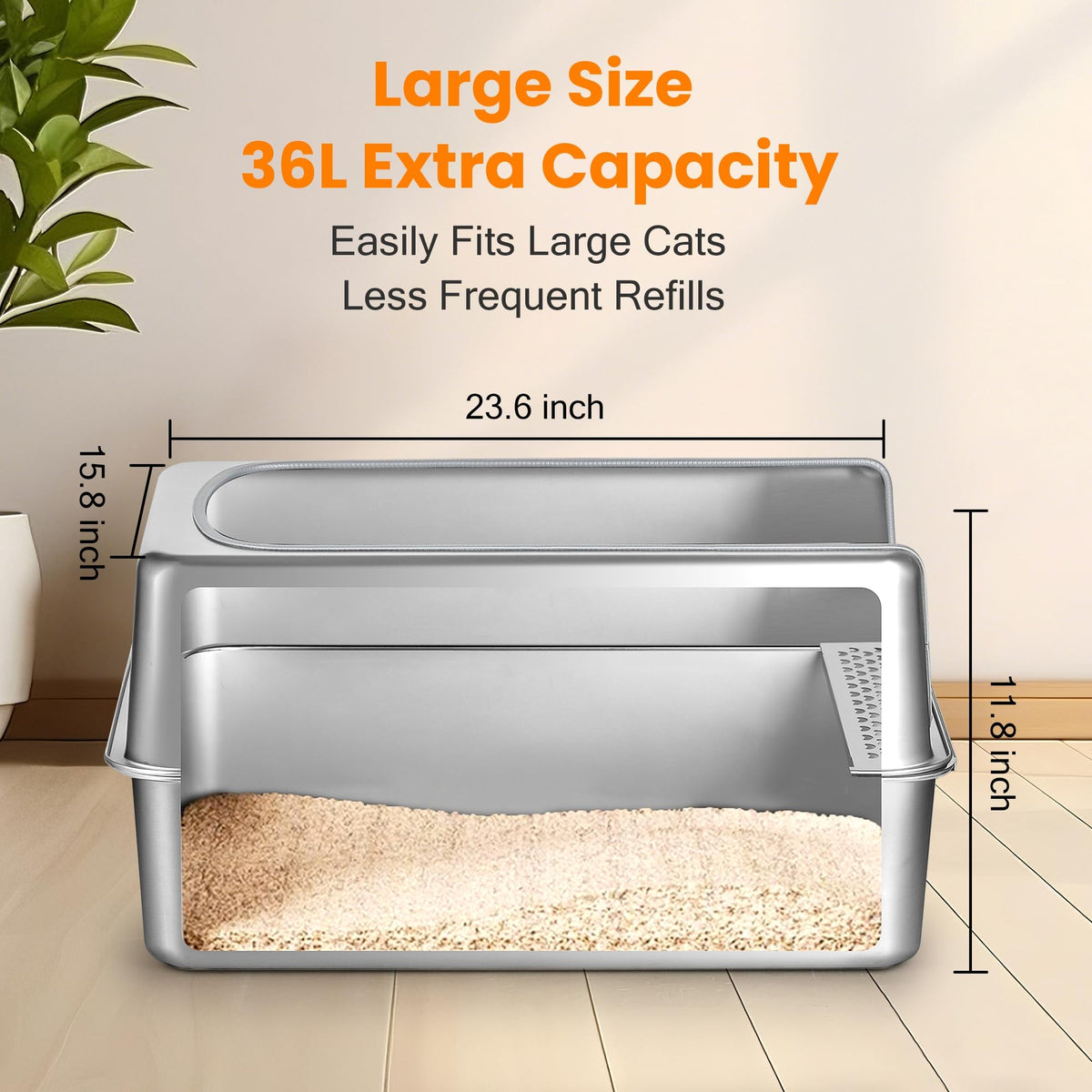 Aothey Full Stainless Steel Litter Box (23.6''X15.8''X11.8'') With High Sides To Reduce Mess. Eeasy To Clean, And Includes Slotted Step, Litter Mat, Scoop, And Anti-Slip Pads For A Cleaner, Tidier Home.