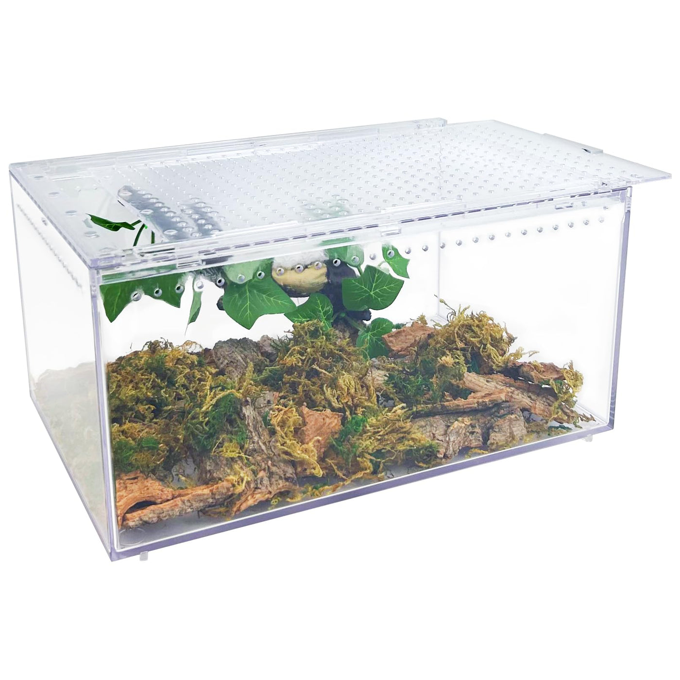 Apatal Reptile Terrarium Enclosure 12''X 8''X 6'' Acrylic Tarantula Breeding Box Magnetic Hermit Crab Habitat Tank Transparent J