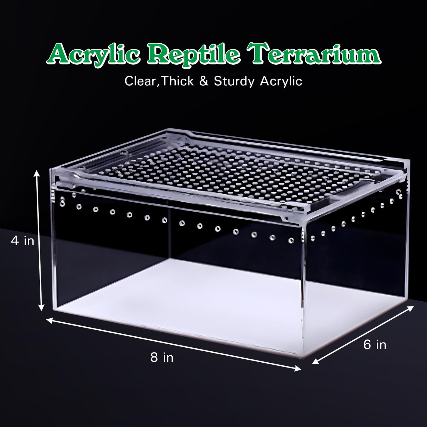 Apatal Reptile Terrarium Enclosure 8X6X4 Acrylic Tarantula Breeding Box Magnetic Hermit Crab Habitat Tank Transparent Jump