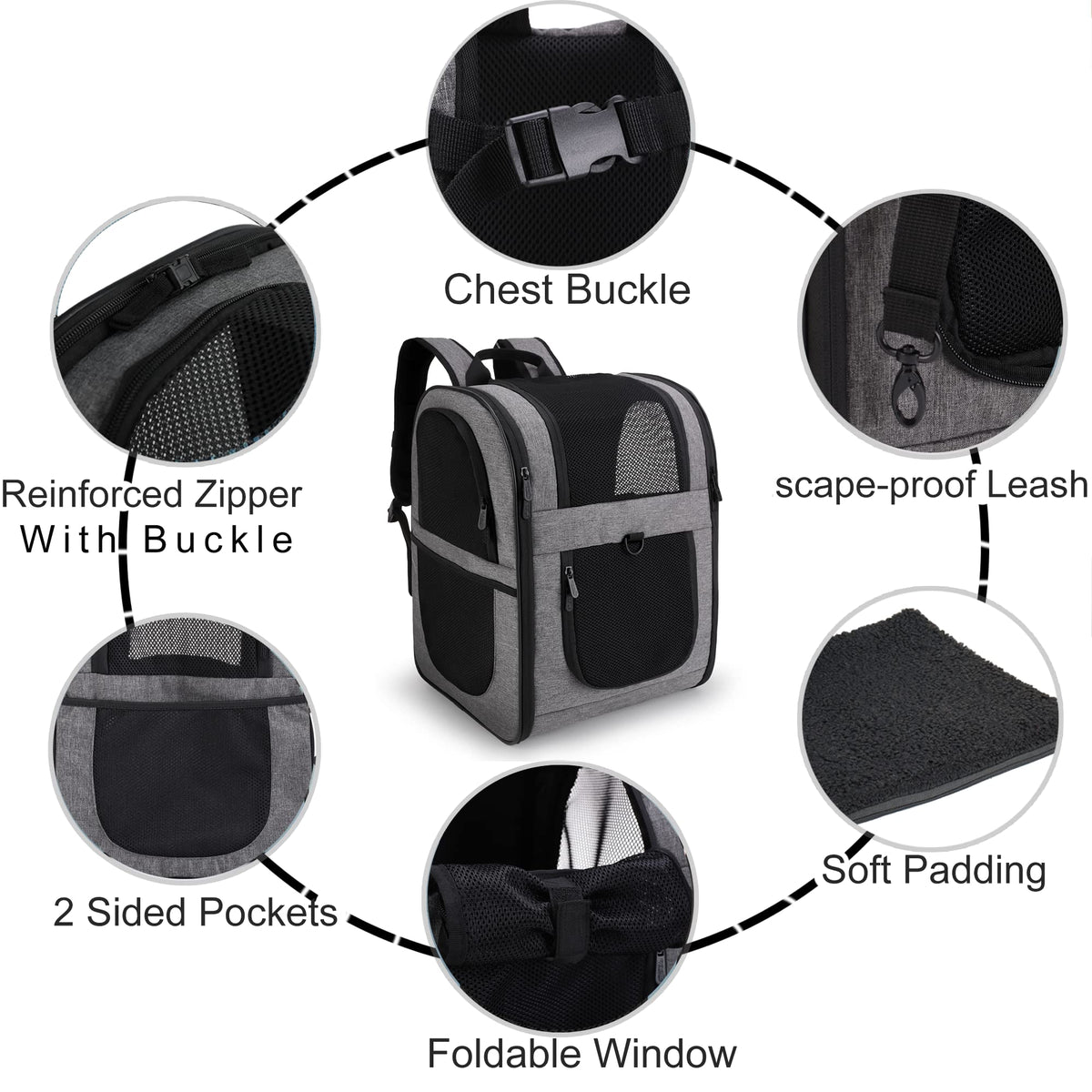 ESCAPE PROOF- The last thing you want is an escaped pet running around the airplane cabin or outdoors. APOLLO WALKER pet backback carrier keeps your pet safe and secure while flying walking cycling or hiking with claw-proof mesh and reinforced zippers. Carrier also has a leash tether to attach to your dog or cat
