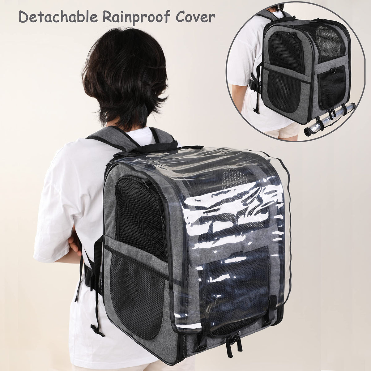 Q: How does the escape-proof feature work in this pet carrier?A: The Apollo Walker Pet Carrier Backpack features claw-proof mesh and reinforced zippers, ensuring that your pet stays secure and cannot escape during travel, whether you're flying, hiking, or cycling.