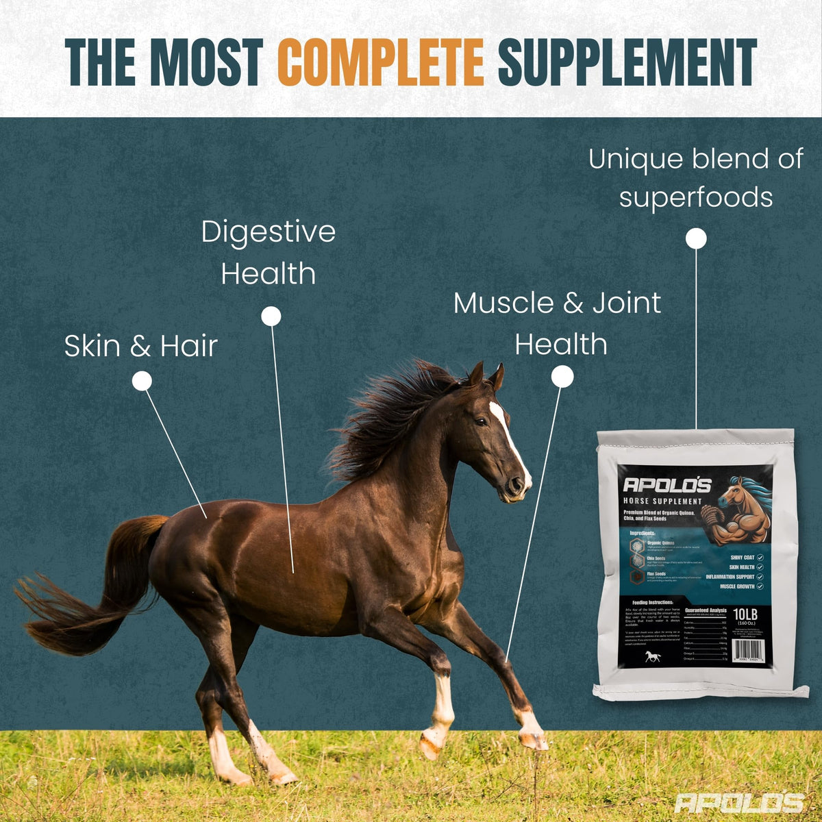 APOLOS Premium Horse Supplement - 10 Lb Bag Premium Blend of Orgnic Quinoa, Chia and Flax Seeds. -Shiny Coat -Skin Health -Inflammation Support -Muscle Growth