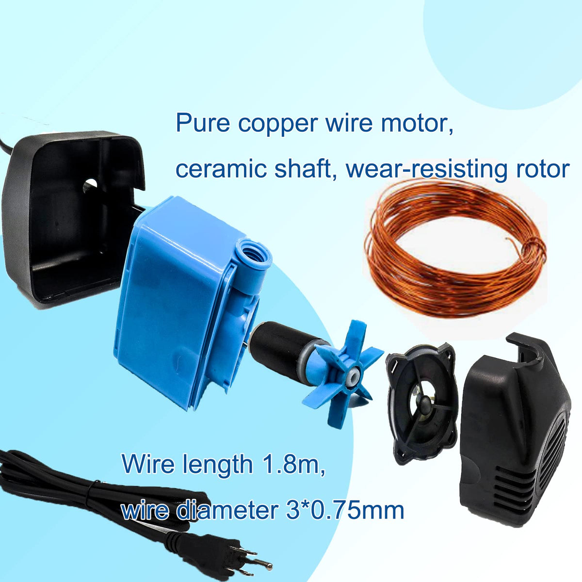 Specifications and dimensions598*323*491 inches Flow rate: 792gPH (3000LH) jet height: 98ft Power: 50W voltage: 110-120V eaturesIt is made of reinforced ABS raw material with wear-resistant ceramic shaft (continuous work for one year without any problems) and the water outlet is designed with turbocharger for stable water output Removable and WashableThis powerful but small pump is easy to hide and camouflage no tools are needed for disassembly and it is very easy to clean Application scopeThis is a high-performance energy-efficient and well-designed pump that can be used in seawater and freshwater ponds fountains waterfalls hydroponic systems and irrigation systems etc Operating temperature: 32 to 104 After-sales service: super durable and reusable with 12 months warranty if you have any questions about the goods you received please feel free to contact us 24 hours professional after-sales service