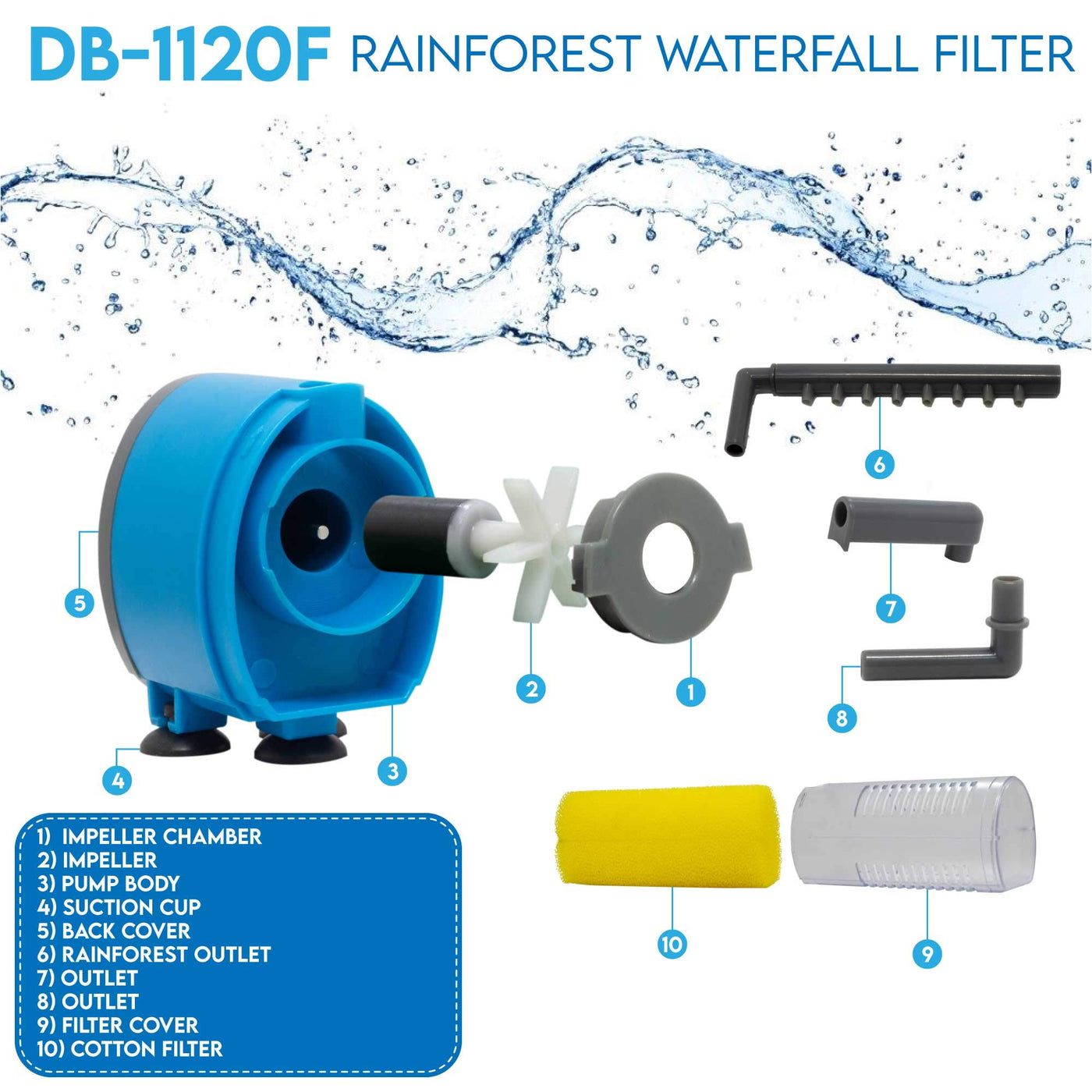 Aqua Dreams 237 GPH water pump is designed for use in freshwater aquariums, fountains, or water features as well as aquaponics and hydroponics. Place the pump above water for a maximum lift of 3 feet 11 inches This power filter performs three functions at the same time: filtration, circulation and aeration. No additional tubing or circulation pump required. Versatile horizontal or vertical mounting options. Backed by our 1-year replacement warranty, the pumps new design is both quiet and efficient. Easy to install and assemble with no tools required. - Max lift 3ft 11in (120cm). - 237 GPH(900 L/H) - 5 1/2 Foot (1.7m) Plug - 120 Volt AC - 60Hz - 20 Watts Power - Secure suction-cup Base - 2 7/8 x 2 1/8 x 7 1/2 in INCLUDES: (1) Power filter (1) Spray bar (1) Elbow Connector Meeting all relevant US safety standards and built using the finest materials, this pump is safe and reliable. The suction cup base is strong and will adhere to any flat or smooth surface and ensures stability. The pump housing is sealed with high grade epoxy resin to protect the motor and other components. Wound with pure copper wire, the stator bobbin was designed and built to prioritize stability. Using high-grade ABS polyethylene, the housing is well-built and durable against wear and corrosion. UL-certified power cables use copper enamel to ensure proper and safe distribution of power. Caution: 1. Ensure the input voltage is the same as indicated on label. 2. Recommended use in 32-95 degrees Fahrenheit. 3. While cleaning, installing, or uninstalling unplug from power source. 4. If damage to the power cord is present, do not use. 5. Recommended for freshwater use only.