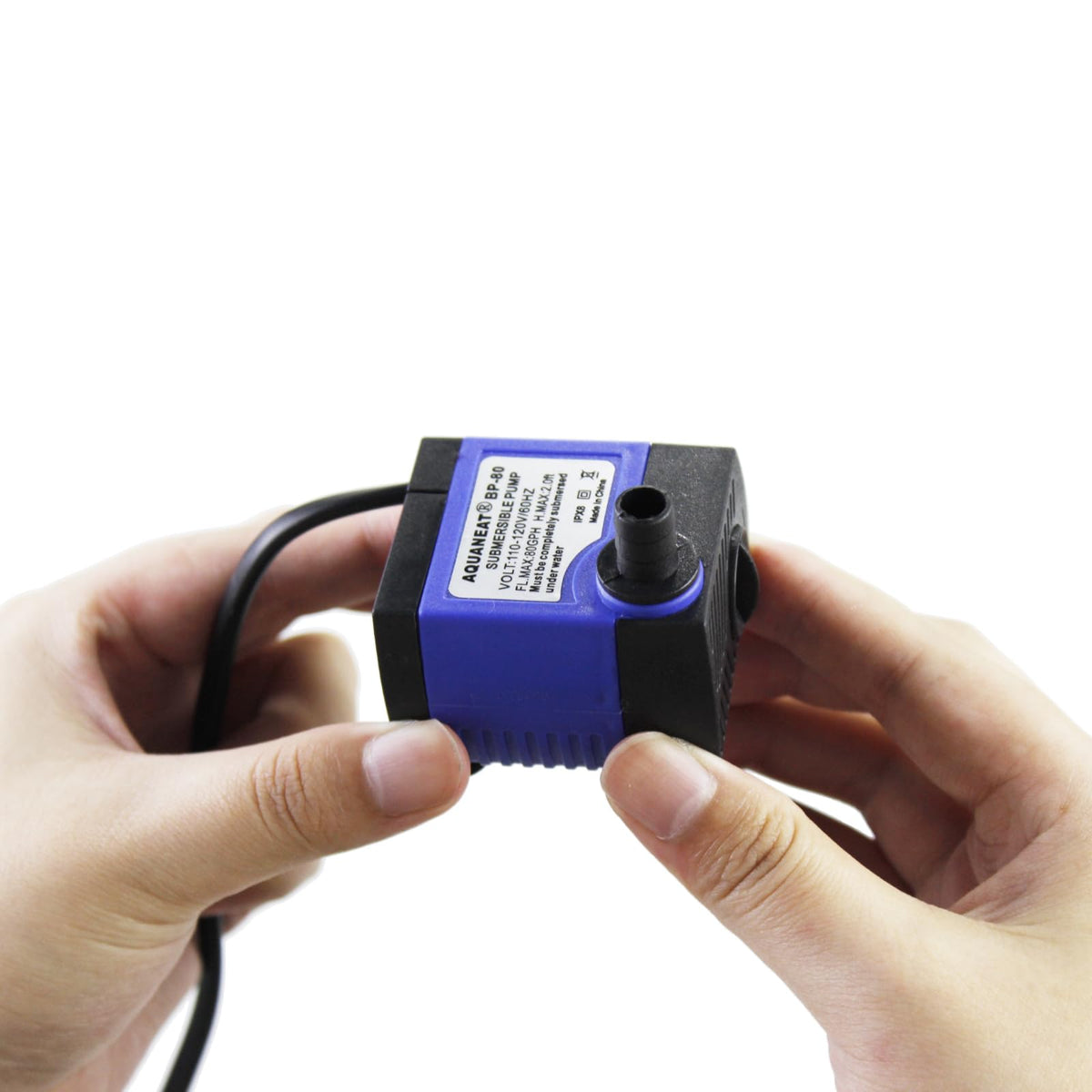 Q: How do I clean and maintain the submersible water pump?A: Cleaning the AQUANEAT water pump is easy; simply detach it without tools and rinse it under water to remove any debris or buildup that may clog the pump. Regular cleaning is recommended to ensure optimal performance.